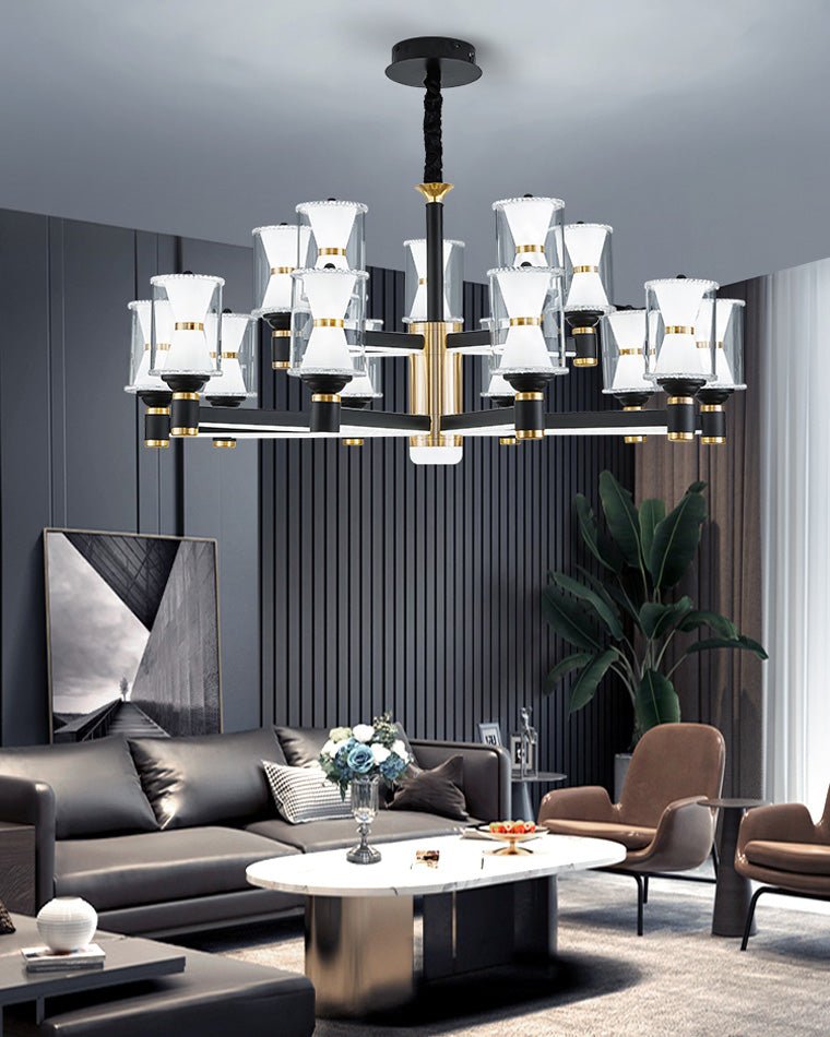 Transform your living space with the striking Lyra Hourglass 2 Tier Chandelier.