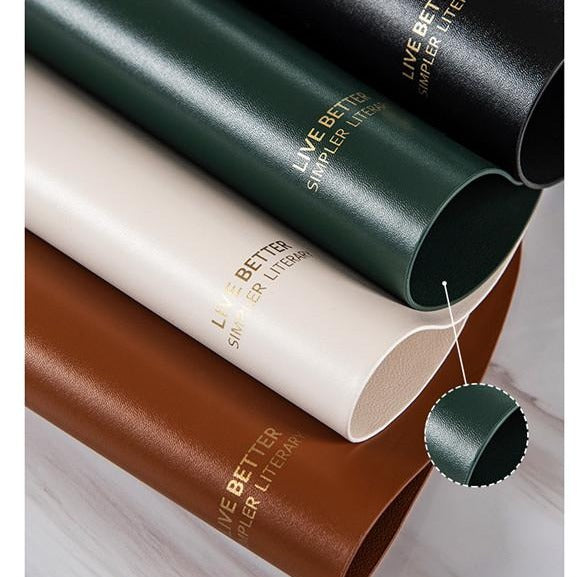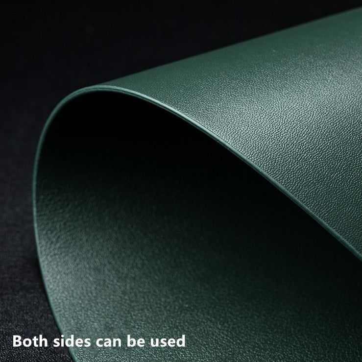 Stylish and unique: round and triangular table mat paired with a faux leather coaster.