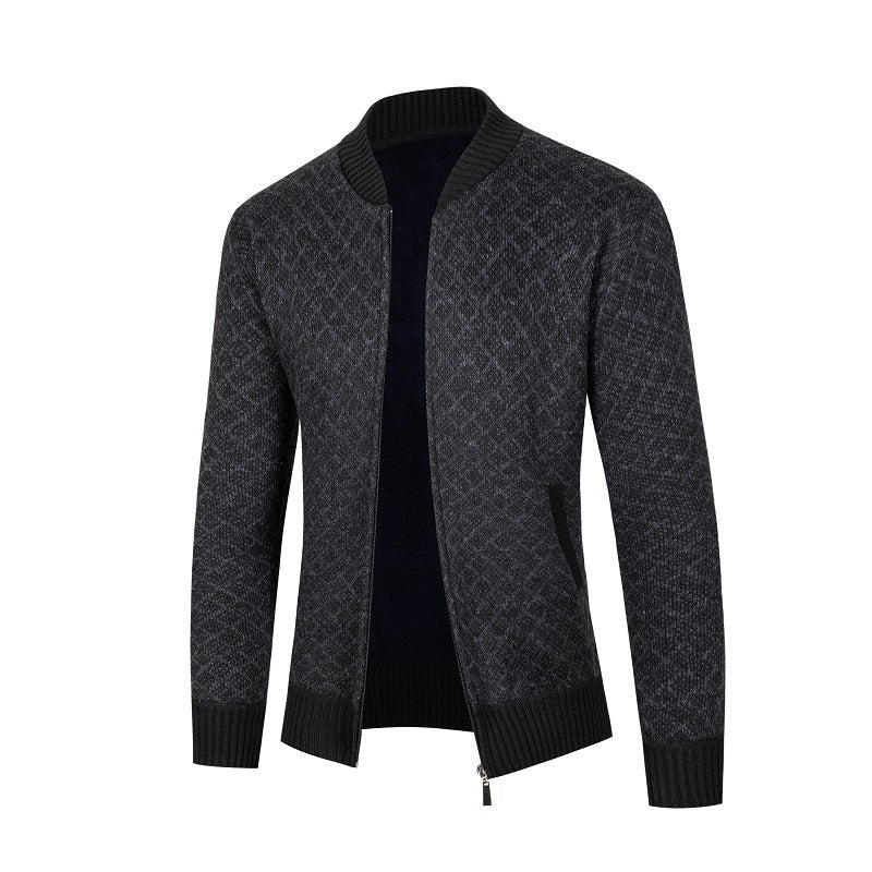 Discover the men's cardigan with a modern diamond pattern and zipper from Skorter, the perfect combination of style and comfort.
