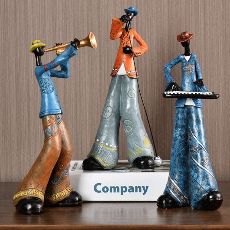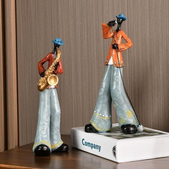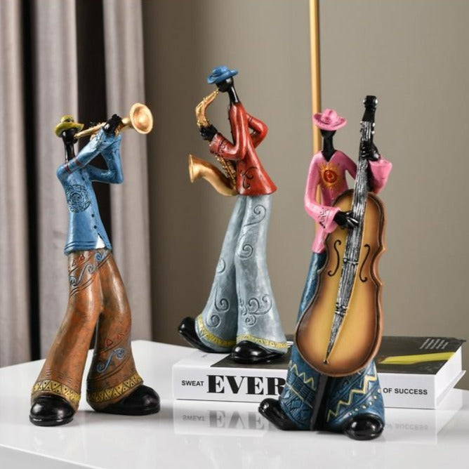 These sculpted pieces infuse a modern flair into classic jazz music. Crafted from hand-cast resin and meticulously hand-painted to capture intricate details and textures, each musician's unique posture and intricate features make them a splendid addition to any setting.