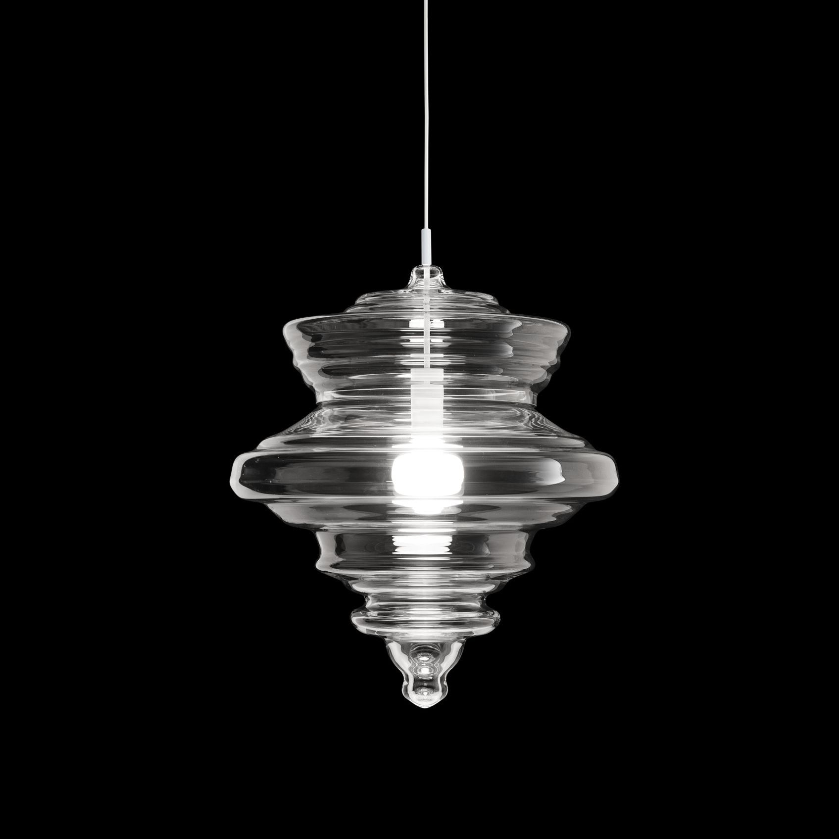 Introducing the remarkable everlasting exuberance suspension collection, a homage to the world's most stunning theaters. The metropolitan opera suspension design showcases a graceful form, inspired by the lavish central chandelier at its namesake opera house. Meticulously handcrafted by seasoned artisans following time-honored techniques, it comes in multiple glass finishes: transparent, opal, and amber to complement any setting. This sophisticated and contemporary creation will infuse your space with a touch of luxury and modern flair.