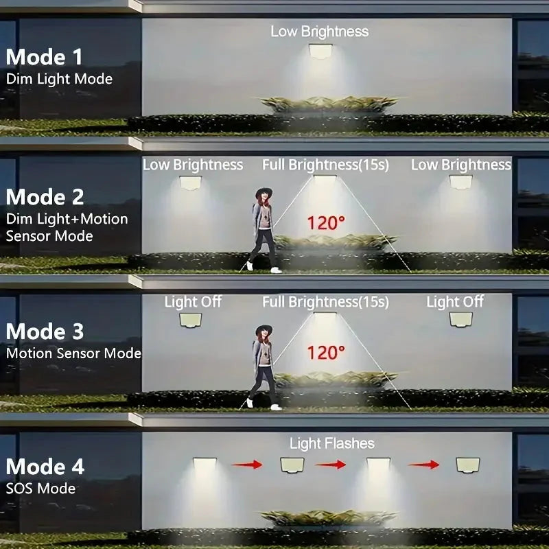Brighten up your outdoor area with the Solar Light Outdoor. Boasting a bright output of 3000LM and four different modes, this security light guarantees reliable lighting whenever you need it. Its 270° wide-angle configuration guarantees broad coverage for improved safety and security. A remote control is included for your ease of use.