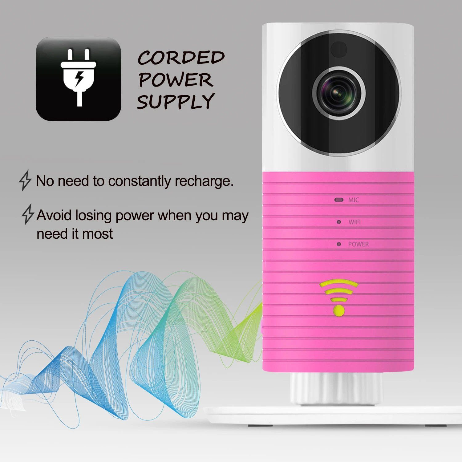 Monitor your child easily from your smartphone or tablet. The Baby Wifi Video Camera is designed for quick and effortless setup. You can control it remotely through an app, letting you keep an eye on your baby from any room within your home using your smartphone or tablet. Utilizing WiFi technology, it allows you to stay in touch with your loved ones (including pets and grandparents) no matter where you are, whether at home or working, through WiFi, 3G, or 4G networks. The included power cable ensures your device remains powered when you need it most. Additionally, it has wireless features that allow for usage in areas like the garden or patio.