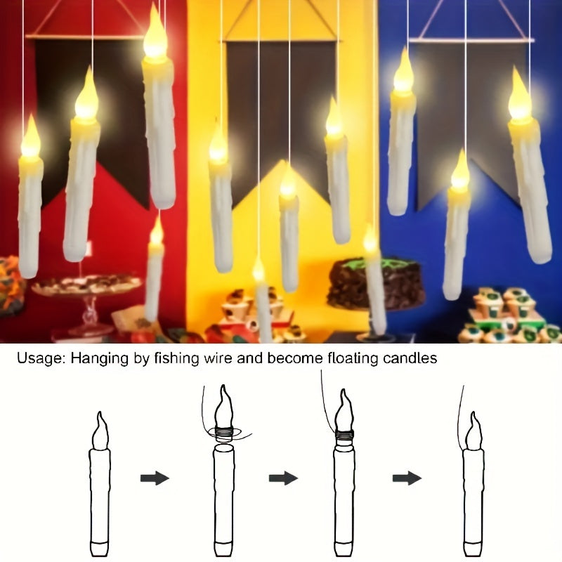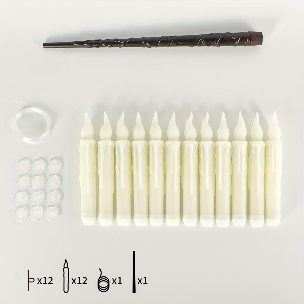 The 12 flameless LED floating lights with a handy remote control are the perfect addition to your holiday and Halloween decorations. These safe, battery-powered lights feature a realistic flame look, creating a magical and warm atmosphere without the hazards of real fire. They include a unique enchanting stick remote, allowing for easy operation from a distance. Ideal for festive gatherings and cozy nights.