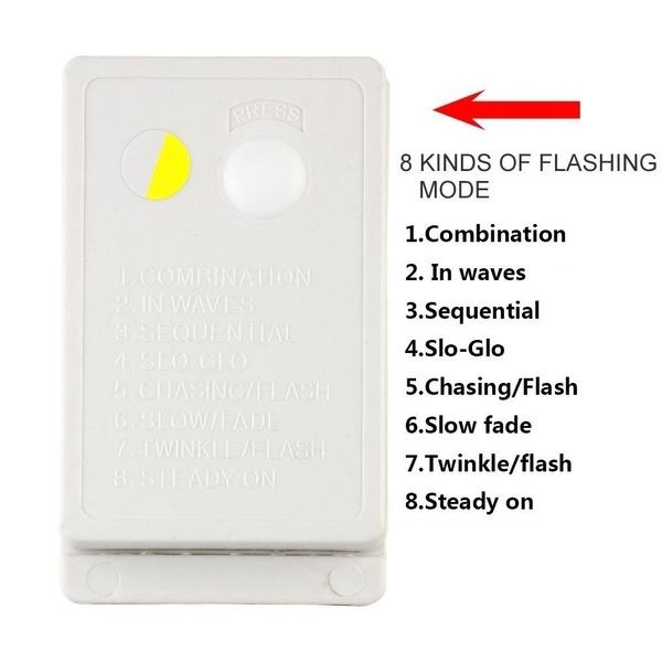 - 8 unique lighting modes: combination, waves, sequential, slow glow, chasing/flashing, slow fading, flashing, and steady on.