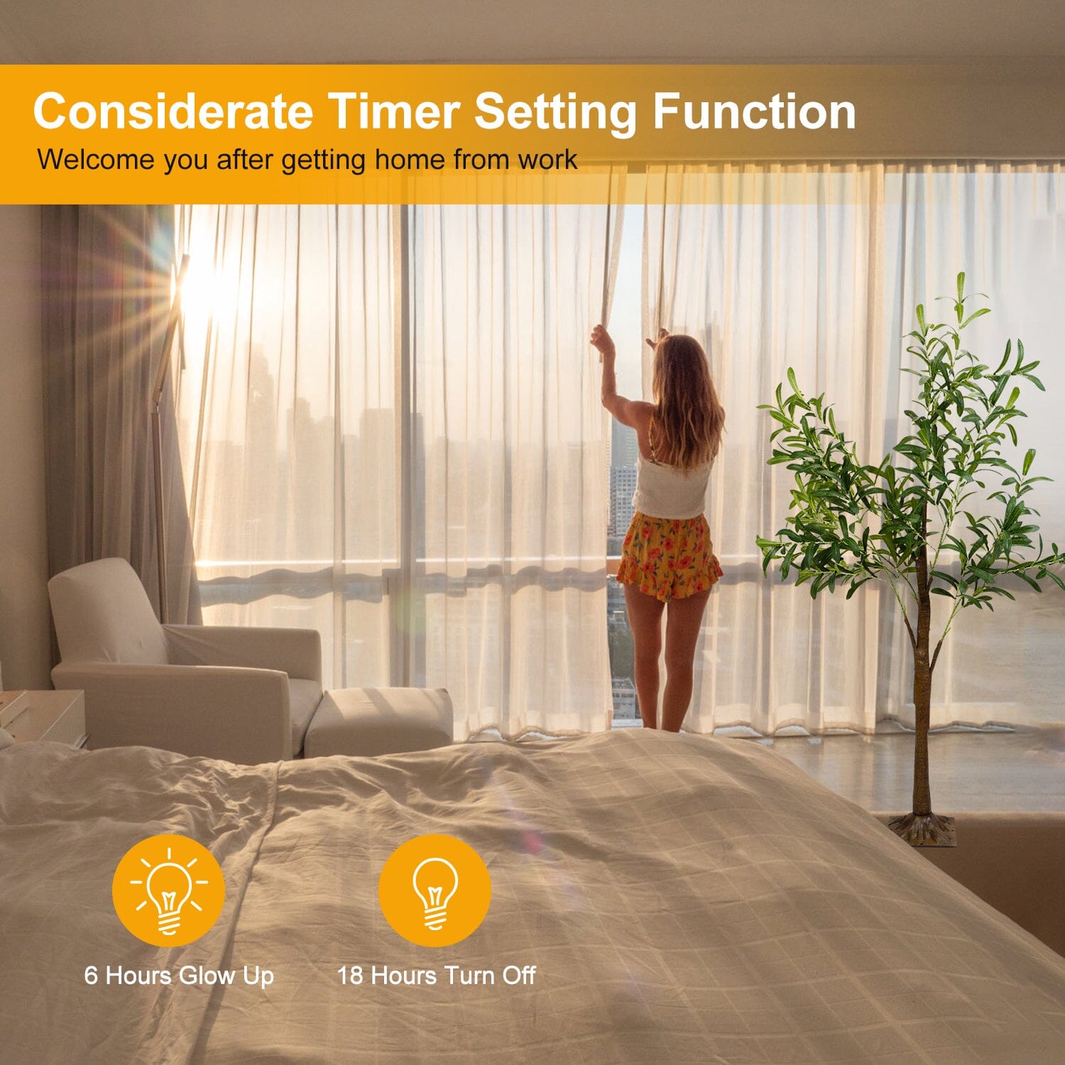 - Timer Feature: This artificial plant is designed with a timer function, illuminating for 6 hours and then powering off for 18 hours. Once programmed, this stunning illuminated tree will automatically light up in the evening, welcoming you home.