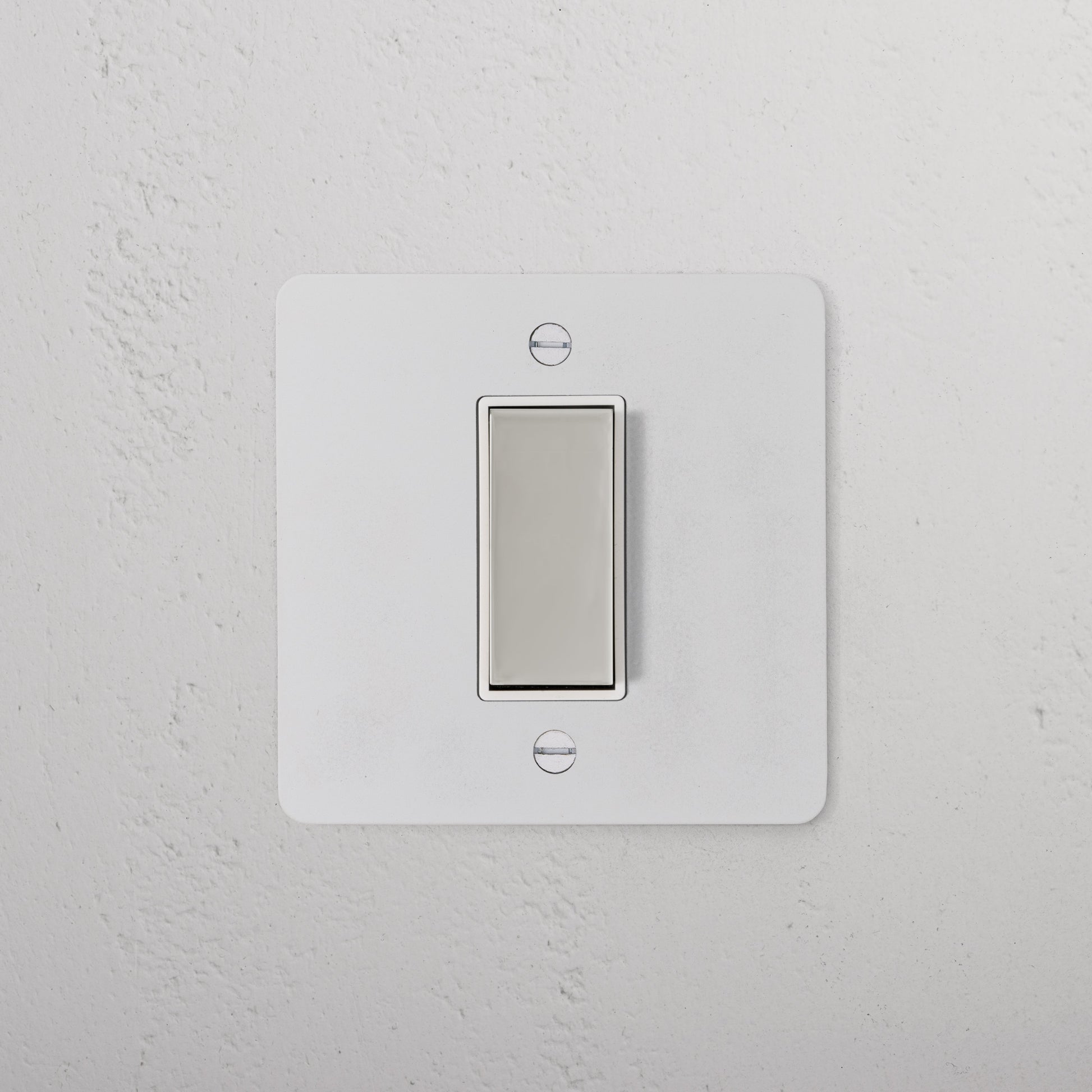 A minimal amount of plastic encircles the toggle switch, available in either white (as shown) or black.
