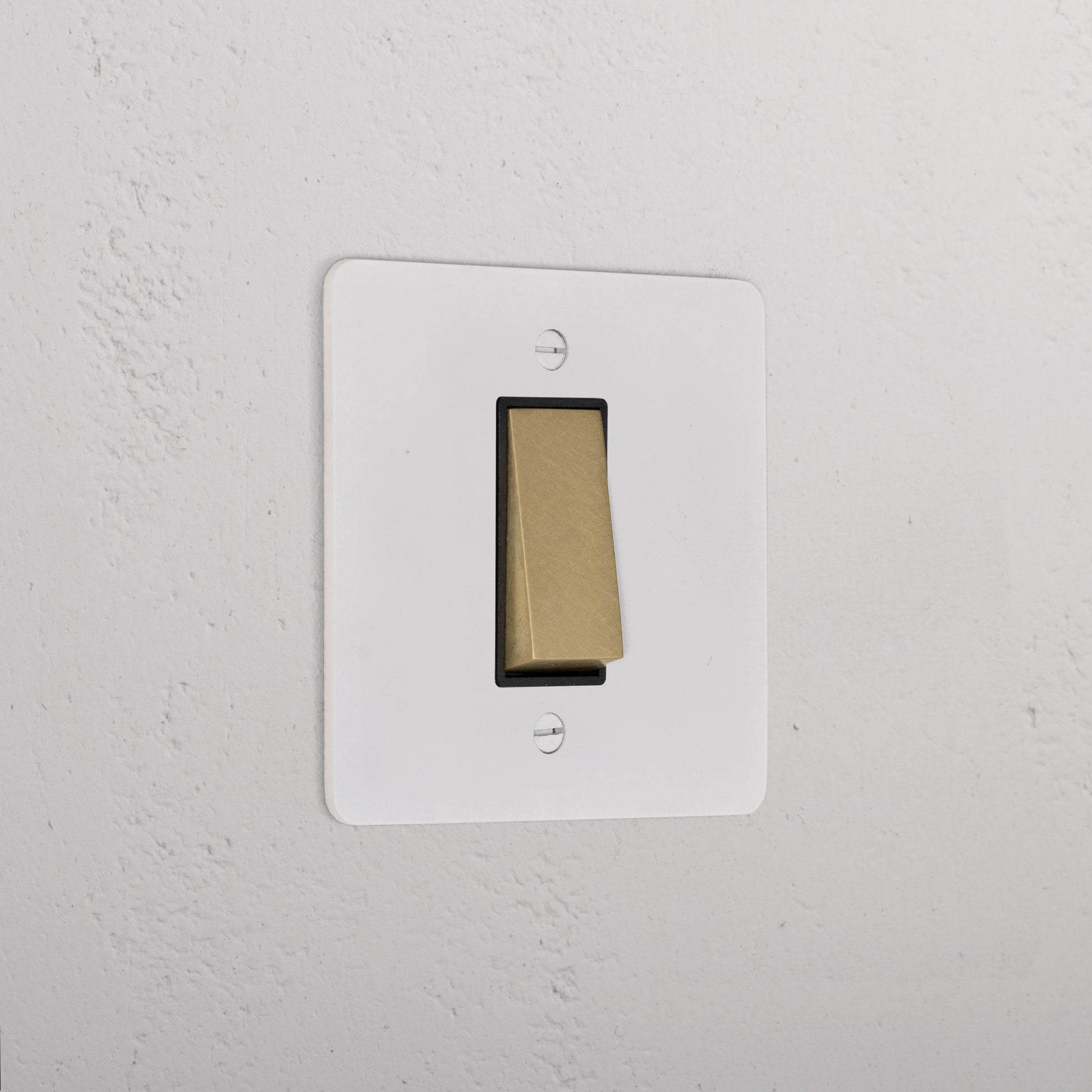 The refined details in solid brass on this switch showcase an antique brass finish. This finish is commonly described as a 'living' finish, as it interacts with the surrounding air and moisture, leading to a darkening effect, particularly in frequently touched areas. We have accelerated this process through hand-aging, giving it that classic vintage look right out of the packaging.