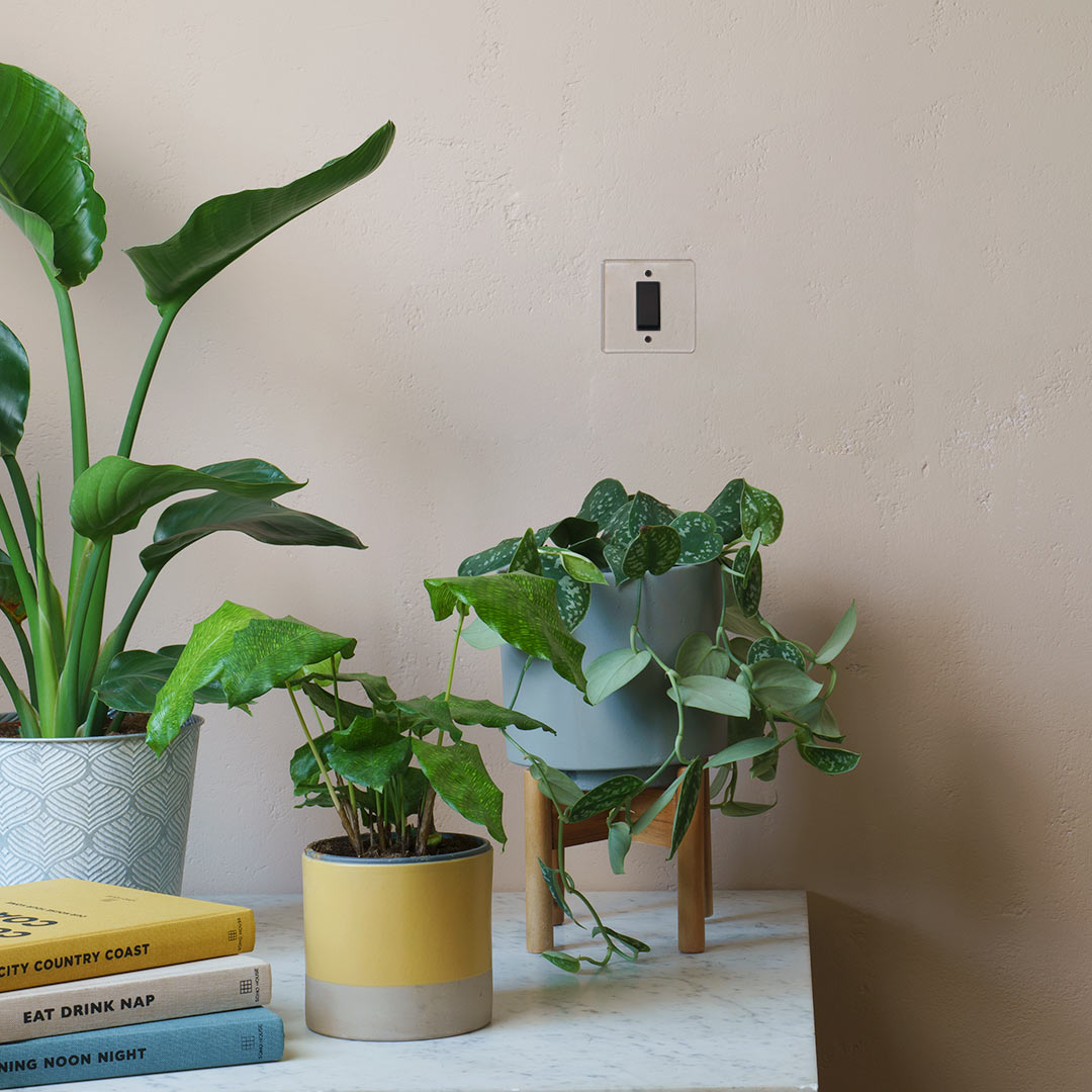 The transparent plate is made of smooth polycarbonate. It comes with a paper template that you can trace or use to cut out wallpaper, allowing the switch to seamlessly integrate into your wall.