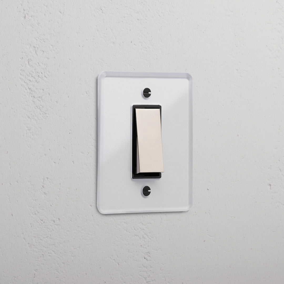 The transparent plate is made from sleek polycarbonate. It includes a paper template that you can paint over or use to trim wallpaper, ensuring the switch integrates smoothly into the wall.