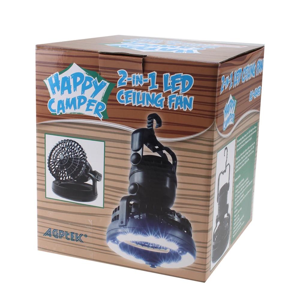 The extraordinary Happy Camper Deluxe Camping Combo LED lantern and fan is designed to keep you refreshed and cozy, whether you are camping outdoors or relaxing indoors in your tent. With 18 powerful LED bulbs, you'll have ample lighting throughout the night. Bring a slice of home comfort with you as you explore the wonderful outdoors. You can effortlessly hang the Happy Camper Deluxe Camping Combo LED lantern and fan from your tent or canopy, or set it on any surface to enjoy prolonged periods of light and airflow.