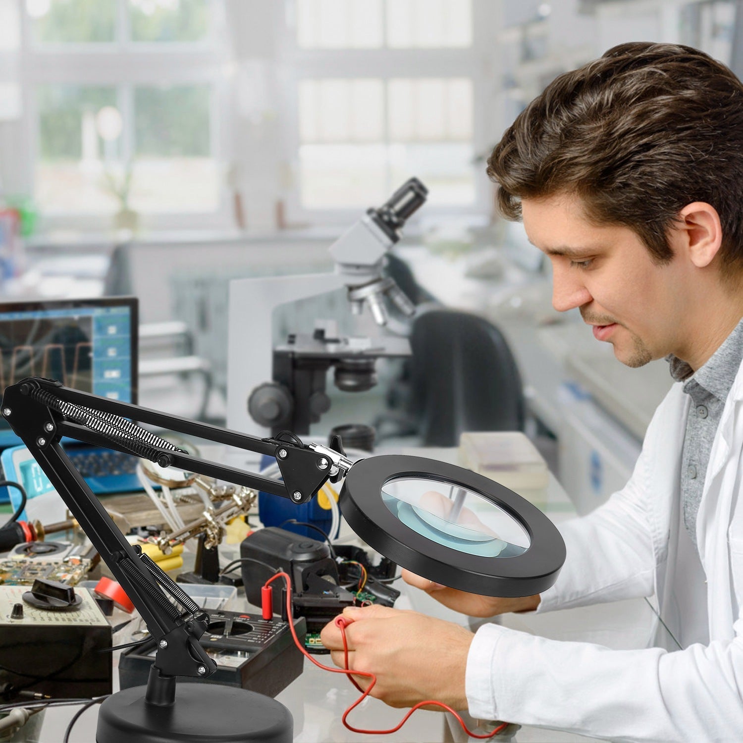 Are you dealing with small items, complex components, and hard-to-see objects? This magnifying lamp is the ideal solution for any workspace where meticulous attention to small details is essential. Equipped with 72 LED lights, it ensures prolonged and reliable lighting. With three different light modes and ten levels of brightness, you can quickly adjust to the perfect lighting setup for your needs. The flexible arm allows for easy modifications to find the optimal position. It can be securely attached to your desk with the included clamp or set up independently by utilizing the stand.