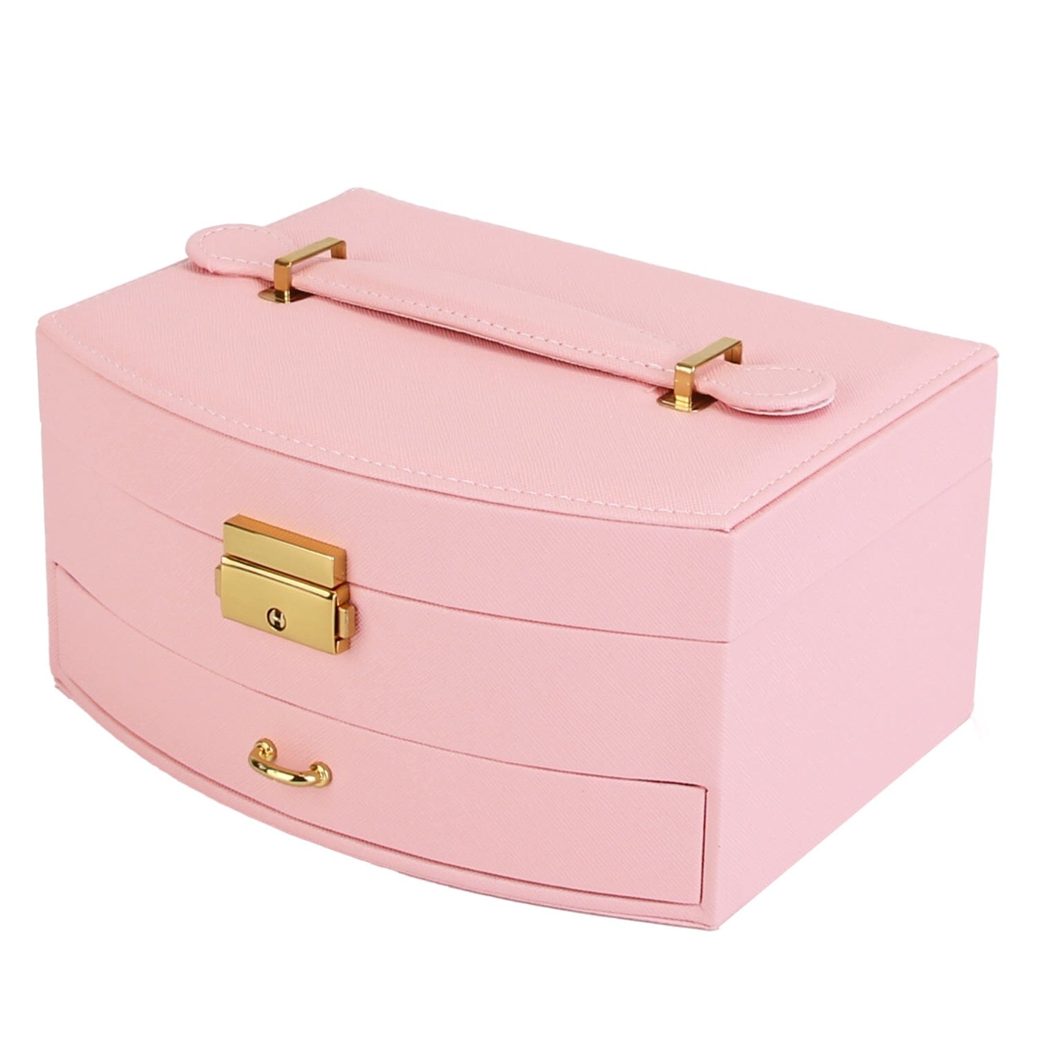 Delight your special someone with our stunning jewelry box! These jewelry cases boast two tiers, providing generous storage for all your beloved accessories or charming hair pieces, such as bracelets, watches, brooches, necklaces, and hair ties. Rings and other items can fit in perfectly as well. Made from PU leather, it features a secure locking system, a stylish design, and is protected against water and dust. Its compact dimensions and comfortable grip make it easy to carry on your travels. The integrated mirror allows for effortless grooming or style checks. This makes for a wonderful gift for anyone who loves beautiful jewelry, ideal for wives, girlfriends, and teenage girls during celebrations like Valentine’s Day, Mother’s Day, Thanksgiving, Christmas, birthdays, and beyond.