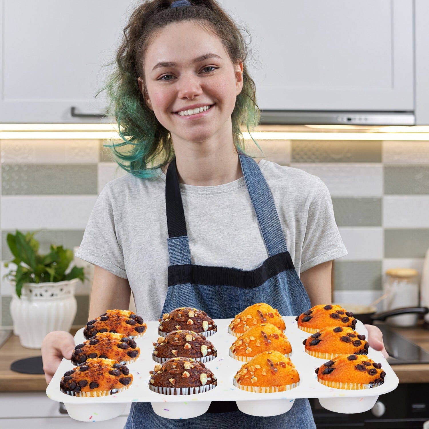 Bring joy to your family and friends with an amazing dessert adventure using our muffin pans! Made from premium silicone and offering a total of 24 cups, our cupcake molds enable you to bake numerous muffins or cupcakes simultaneously, making them perfect for family celebrations, gatherings, or professional baking occasions. The smooth design ensures easy muffin removal by simply pushing at the base. These pans can endure temperatures between 32℉ and 248℉, and are safe for use in ovens, microwaves, refrigerators, freezers, and dishwashers. Experience exceptional baking with our 12-cup nonstick muffin pans!