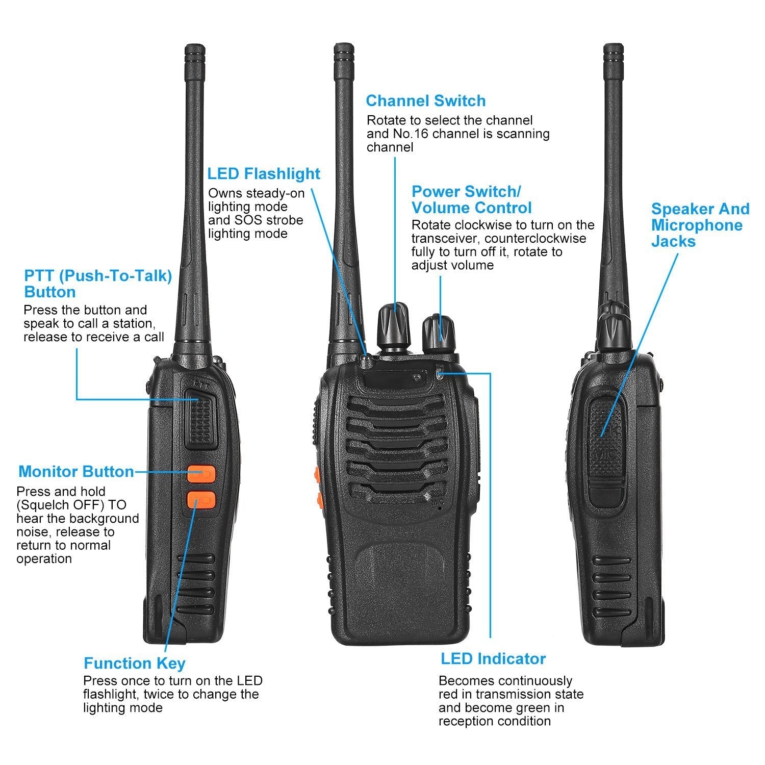 The Baofeng BF-888S two-way radio functions on UHF frequencies from 400 to 470MHz and offers 16 channels for a range of uses. Its communication distance can extend up to about 8 km (with urban coverage around 1-3 km, suburban areas roughly 2-5 km, mountainous terrains approximately 2-5 km, and flat areas about 4-8 km). The "VOX" feature allows for automatic transmitting when sound is detected, automatically stopping once the discussion is over, which enables the device to listen for signals without pressing the "PPT" button. It also incorporates CTCSS and DCS modes for secure conversations. Additionally, it includes an emergency alarm function and an intense LED flashlight that provides both a steady light and an SOS flashing mode.