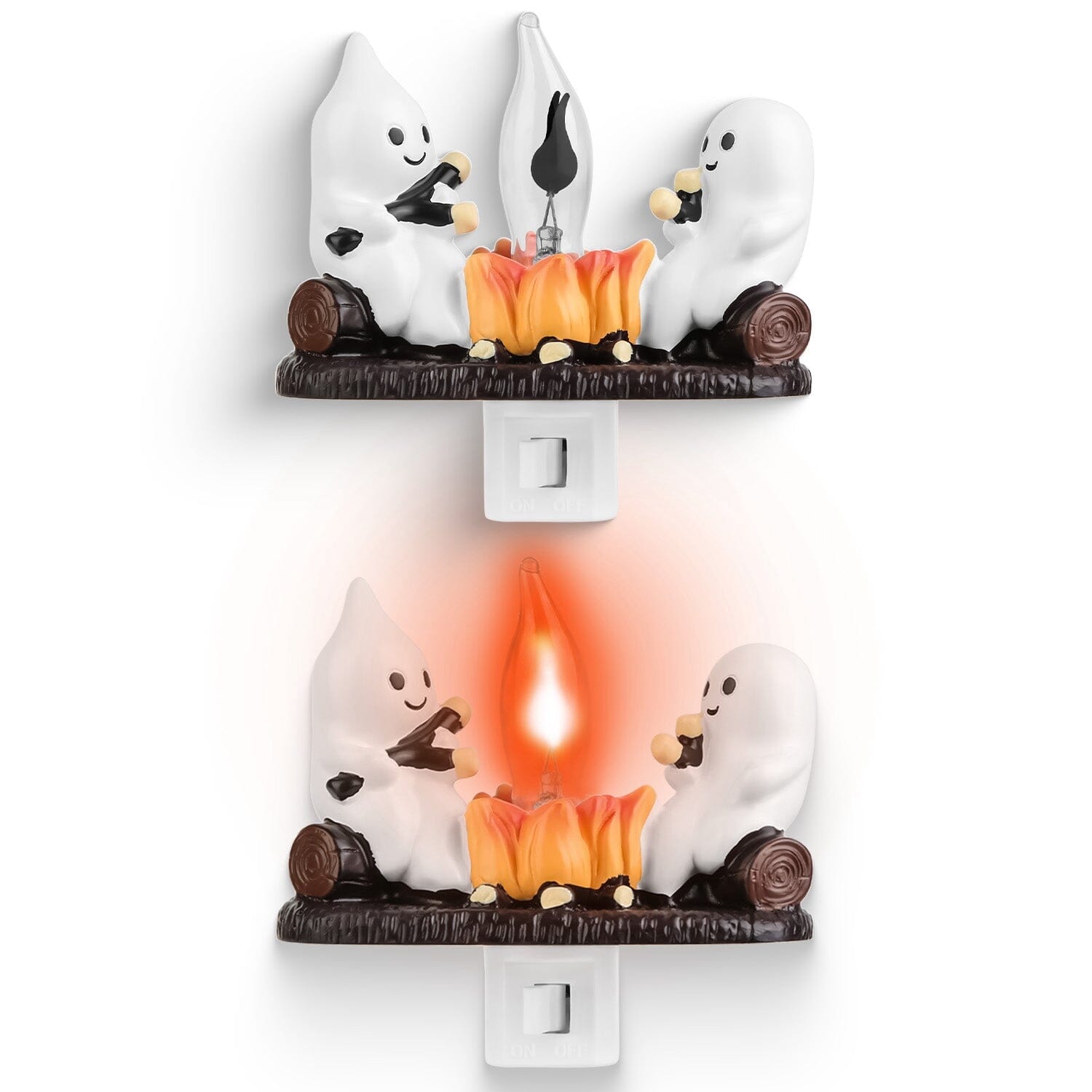 Delightful and friendly spirits bask in a cozy campfire setting with this charming ghost campfire lamp, adding a playful element to any space, whether it's in a child's bedroom or included in Halloween decorations. The 1.3W energy-saving LED bulb provides a warm yellow light along with a flickering flame effect, offering energy-efficient illumination while establishing a soft, cheerful, and enchanting atmosphere. Just plug it into an electrical outlet and turn it on to get started. As Halloween draws near, our ghost campfire lamp that lights up the night will become your most striking autumn decoration.