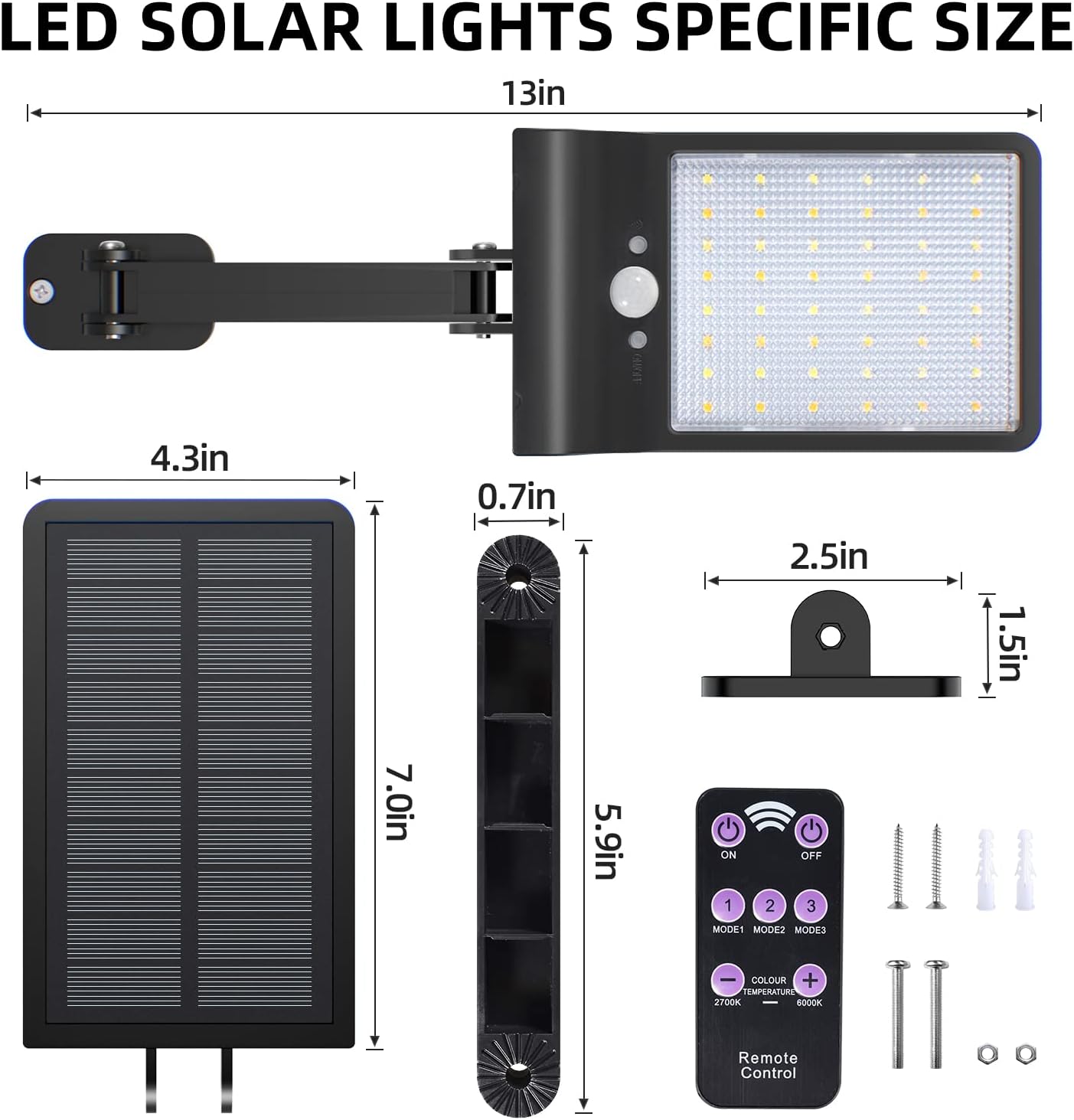 The 48 LED outdoor solar lights function with a top-notch photo-sensing device. The included remote control enables easy adjustment between 3 light modes from up to 20 feet away. In induction mode, the PIR120°16-33FT motion sensor detects movement, giving you the freedom to move about at night.