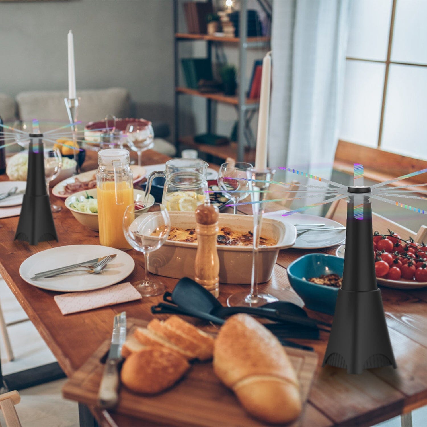 Tired of pesky flies or insects ruining your meals? Our Fly Defense Fan is the ideal solution for your problem. Its reflective design creates a barrier that keeps flies away, allowing you to savor your meal without disturbances. With our advanced soft-stop technology, you can count on safe operation. To enhance usability, we’ve included a handy hanging hook on the device and provide two different power options. Weighing merely 0.31 lbs, this fly fan is lightweight, making it perfect for both indoor and outdoor settings, whether for picnics, barbecues, family meals, or special gatherings.