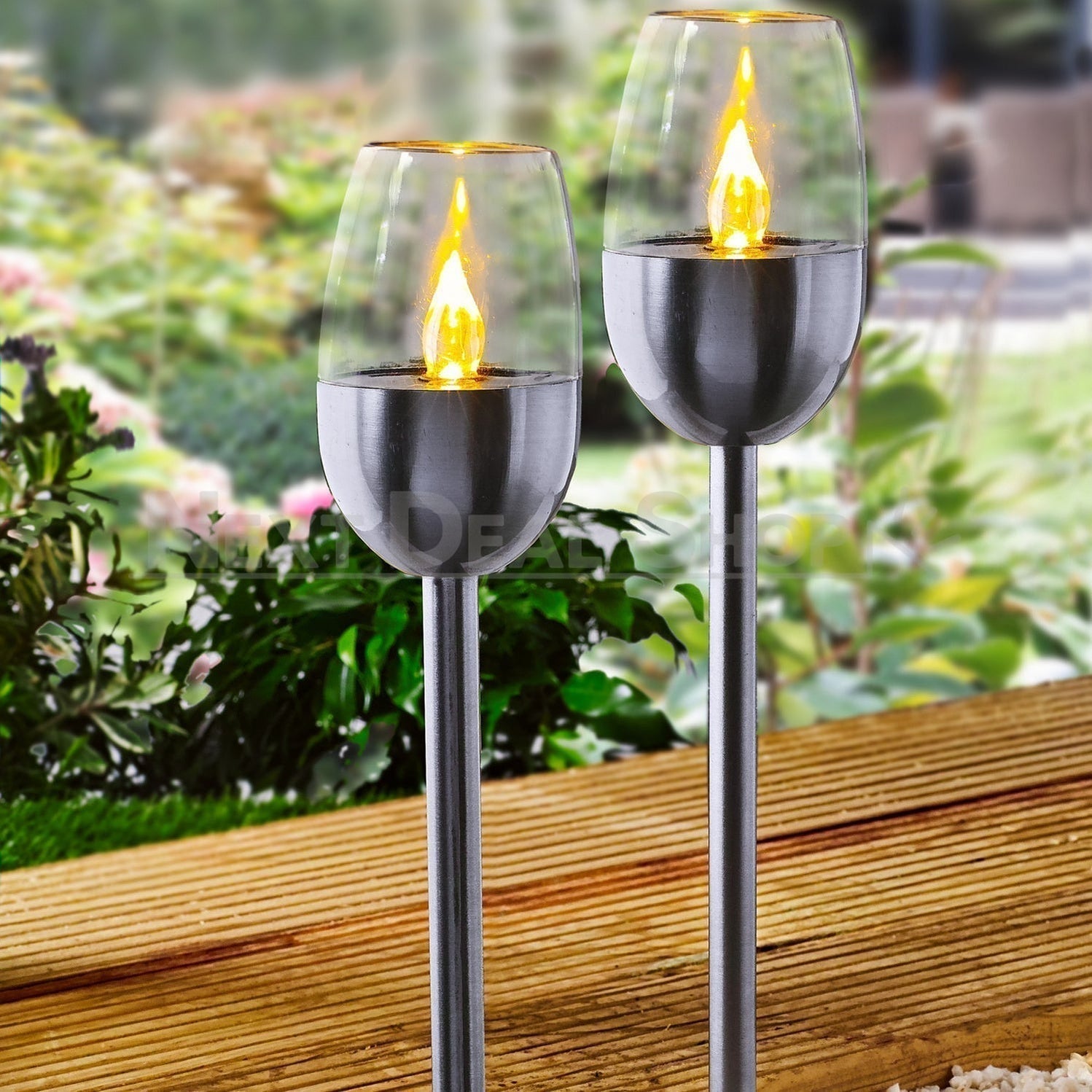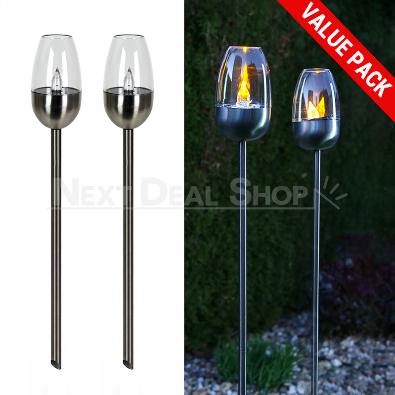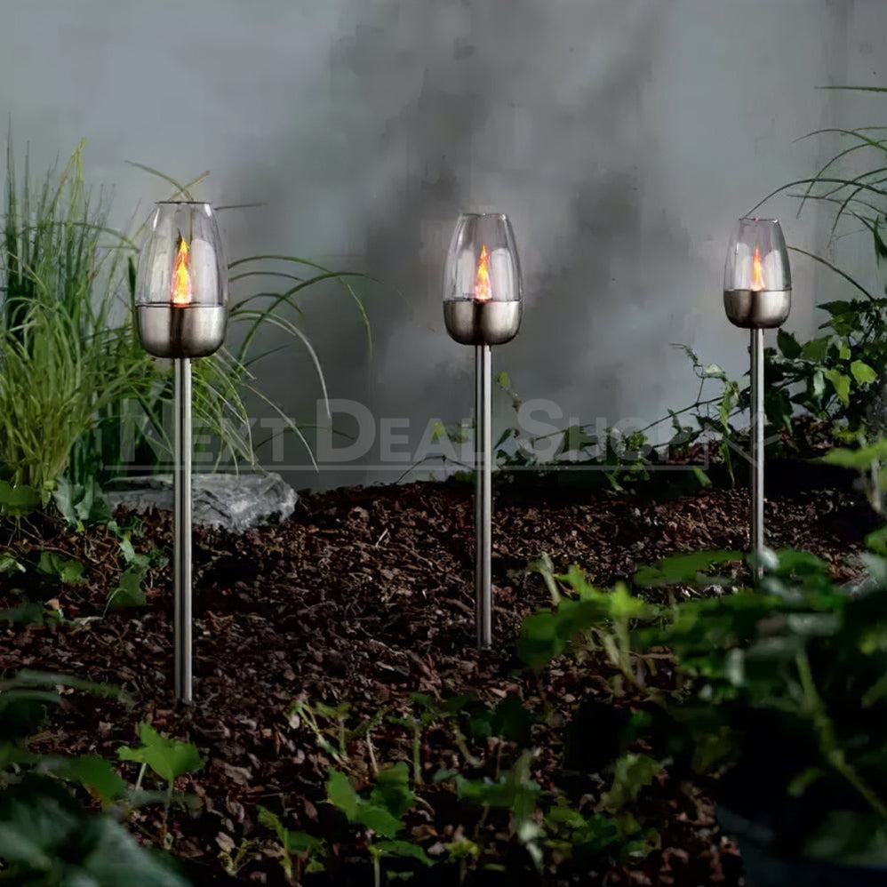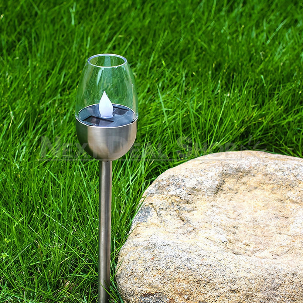 Skorter | 2 Pcs - Solar-powered stainless steel LED candlestick