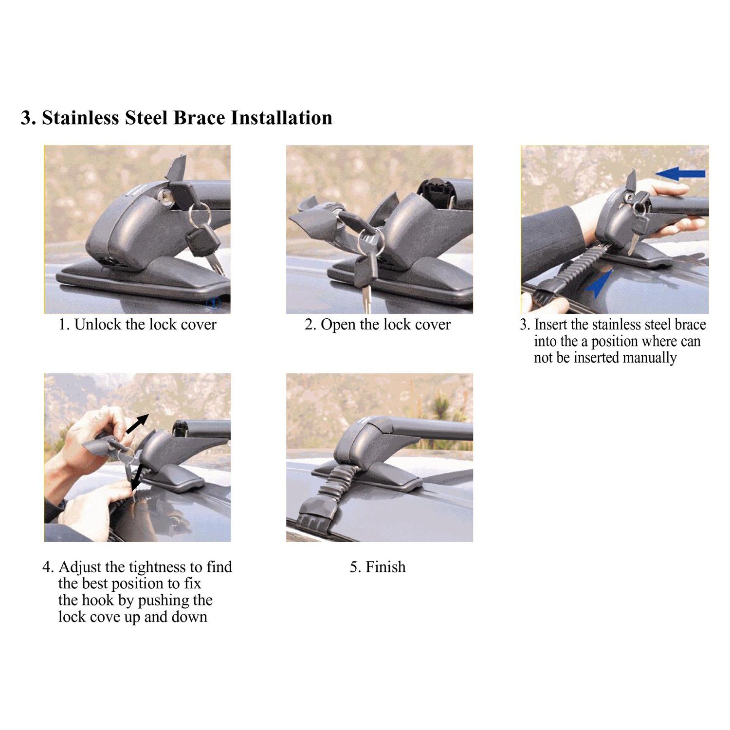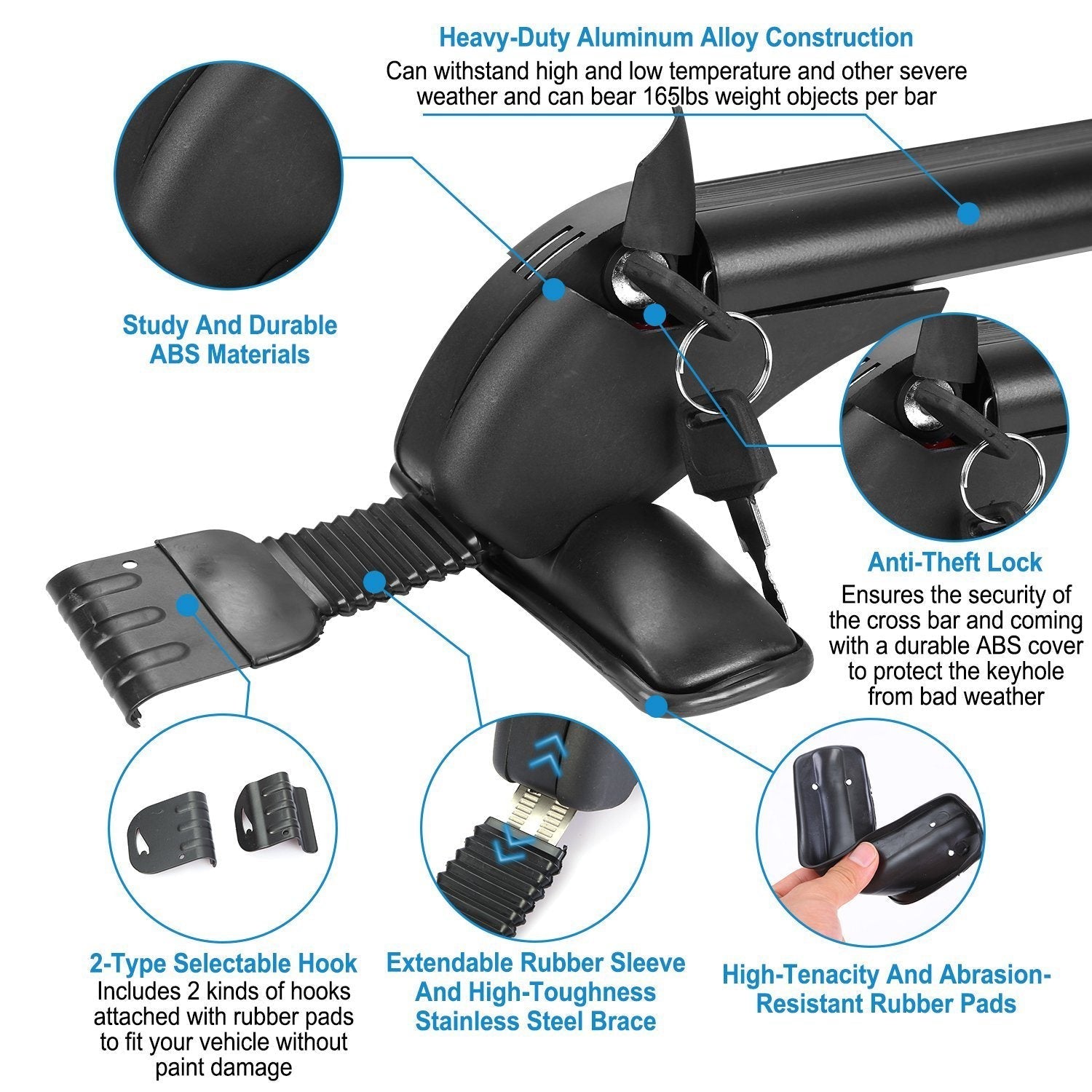 Our crossbar is crafted from premium aluminum alloy, built to endure tough weather elements, featuring a weight capacity of approximately 75 kg for each crossbar. The rounded ends are designed to reduce wind noise and drag, while each bar includes a theft-resistant lock to keep it securely mounted. Moreover, installation is straightforward on most vehicles with a spacing between the registration grooves of 109 cm to 114 cm, making it ideal for transporting bicycles, kayak racks, cargo carriers, cargo boxes, snowboards, surfboards, and much more.