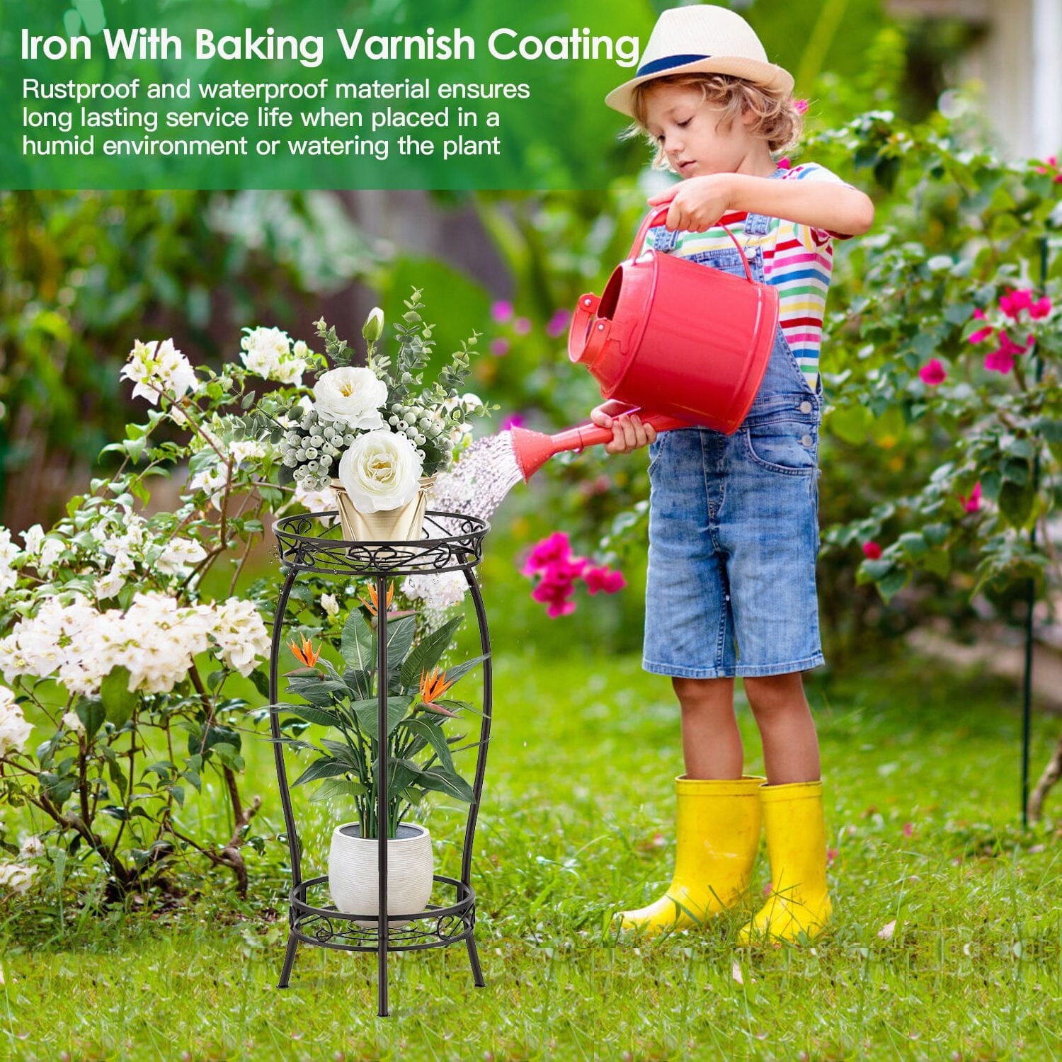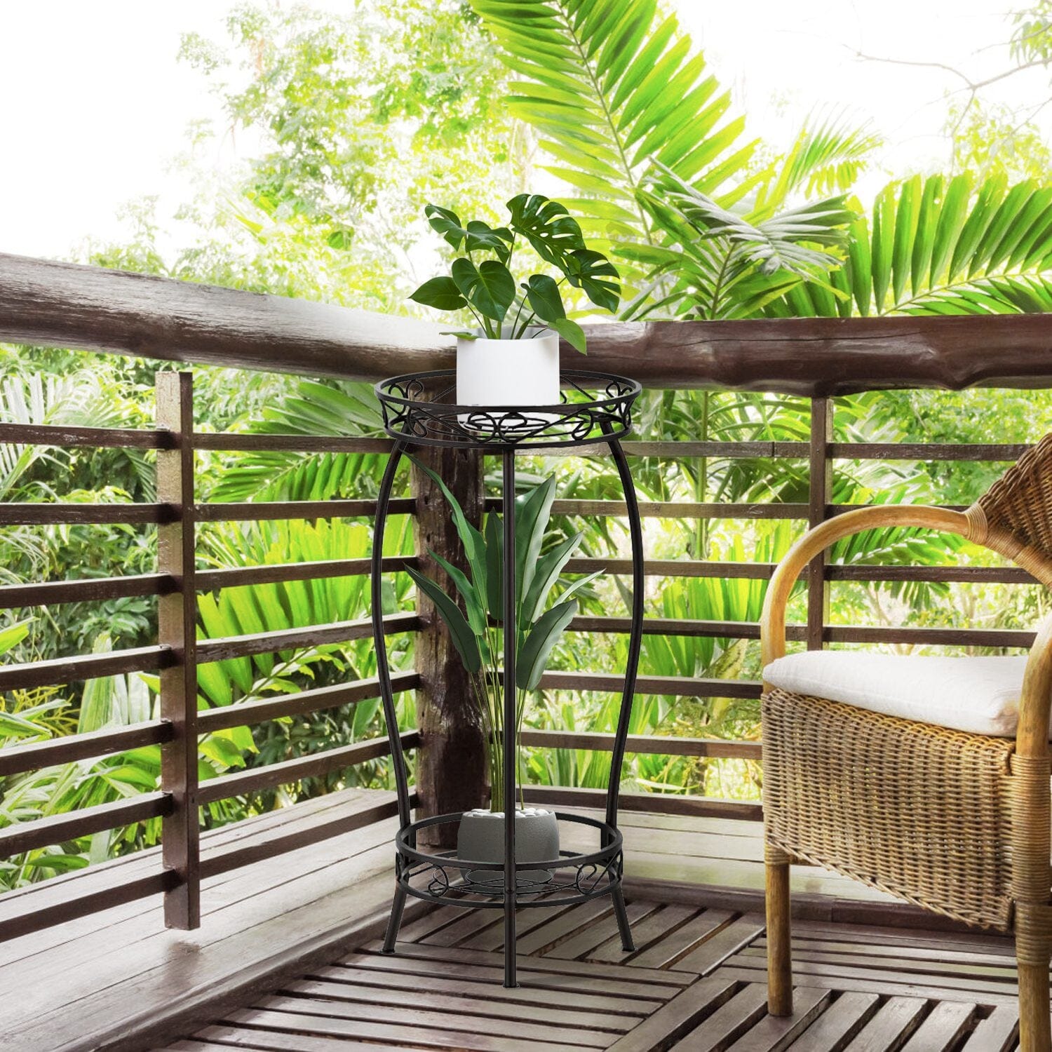 Our dual-level plant stand presents a stylish and modern aesthetic, making it a perfect fit for a variety of interior and exterior design themes. Made from high-strength metal featuring a weatherproof coating, the robust triangular three-leg design can support a weight of up to 50 kg and is capable of enduring humid environments. The elegantly curved legs come with anti-slip pads, offering a broader surface area to avert scratches or dents during movement. This adaptable stand is excellent for showcasing plants in corners and is also useful for organizing various items in spaces like the bathroom, living room, bedroom, and beyond.