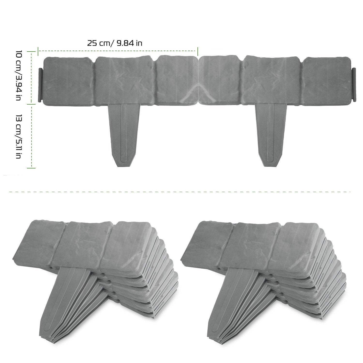 This plastic border stone is an ideal solution for defining your garden beds from your lawn, establishing a naturally clear edge in your landscaping that enhances the overall neatness and organization of your garden. It's perfect for use around flower beds, walking paths, lawns, and more, featuring an uncomplicated installation process that one person can handle easily, alongside requiring little maintenance. Constructed from durable PP plastic, this border stone is built to endure various weather conditions and stay securely in place through sunny, windy, or rainy weather, resistant to rust, rot, melting, or chipping like other metal, wood, or stone alternatives.