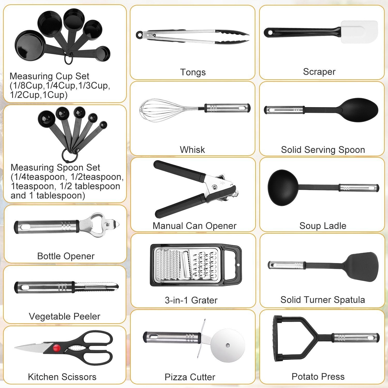 This kitchen utensil collection features 23 items tailored for essential culinary, baking, or grilling tasks, making it a perfect gift idea for holidays, weddings, housewarmings, or graduation events. Made from food-safe nylon and stainless steel, with ergonomic handles and convenient hanging holes, this set promises durability and is easy to maintain. A vital asset for anyone looking to enhance their kitchen experience.