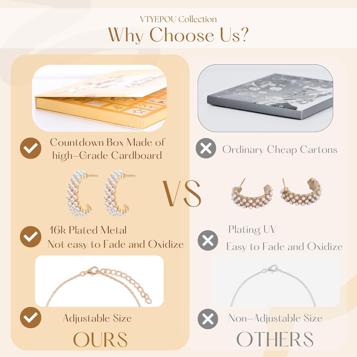 🎁【Ideal Holiday Gift for Women and Teens】Presented in an elegant gold box, our jewelry advent calendar offers a wonderful gifting option for friends, family, or even yourself! This advent calendar combines the thrill of surprise with its stylish design, elevating your anticipation for Christmas.