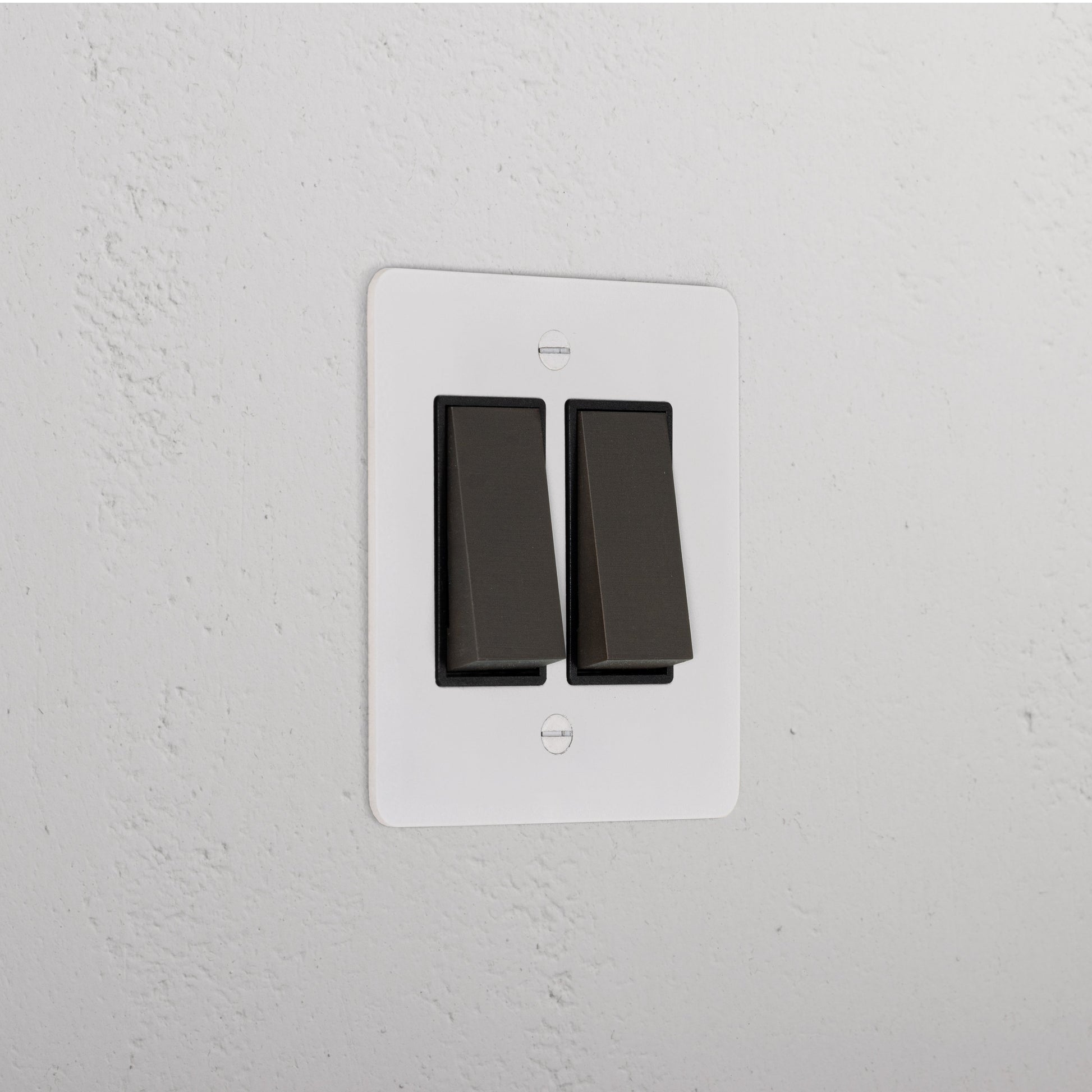 This dual gang two-way switch has been designed with the goal of providing a modern aesthetic.