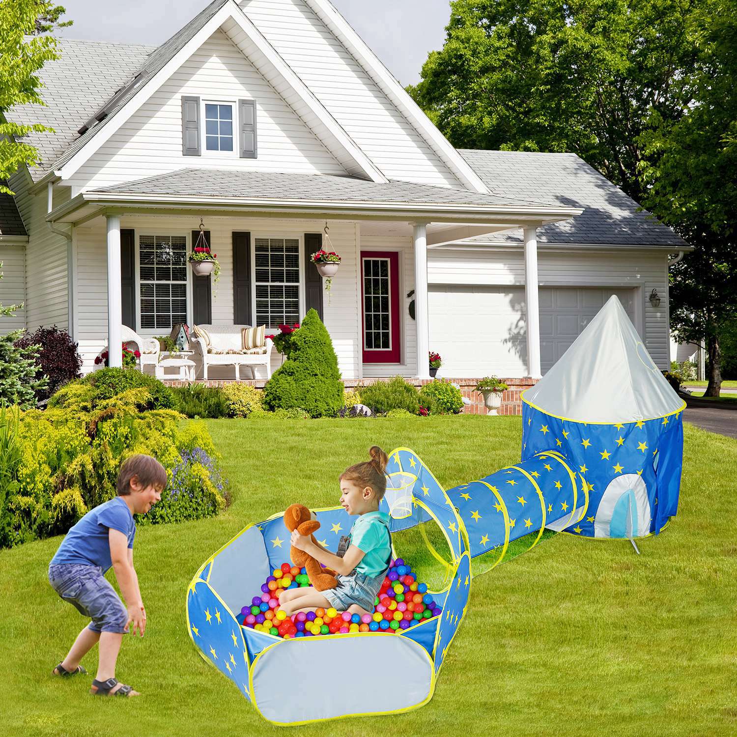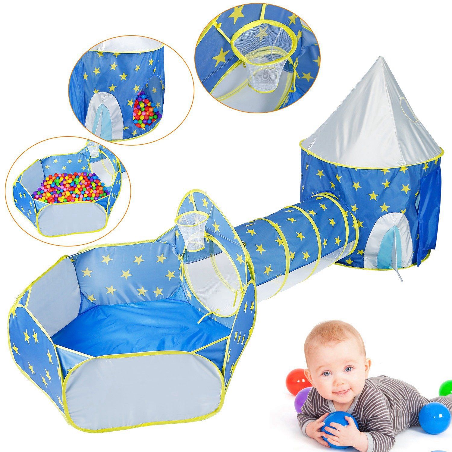 Our innovative 3-in-1 play tent for kids is an amazing toy designed for those who love to engage in imaginative adventures right in their own cozy hideaway! This delightful set includes a play tent, a crawl tunnel, and a pool, which can be utilized in 7 different configurations, either all together or separately, according to your preferences. Get ready for your children to enjoy countless hours of fun with this colorful and adaptable play set. Crafted from child-friendly polyester and featuring a collapsible steel frame, it guarantees safety, stability, and is completely non-toxic for kids to play with. Moreover, there is ample space for 2-4 children (Ages 1-3 years) to enjoy playing together, making it suitable for both indoor and outdoor use. With this setup, your kids will have a safe play environment that helps reduce the risk of injuries. Additionally, our play tent is perfect for organizing toys, helping to keep clutter under control. Ensure your little ones are engaged for hours of enjoyment, allowing them to forge unforgettable and unique experiences with friends and siblings.