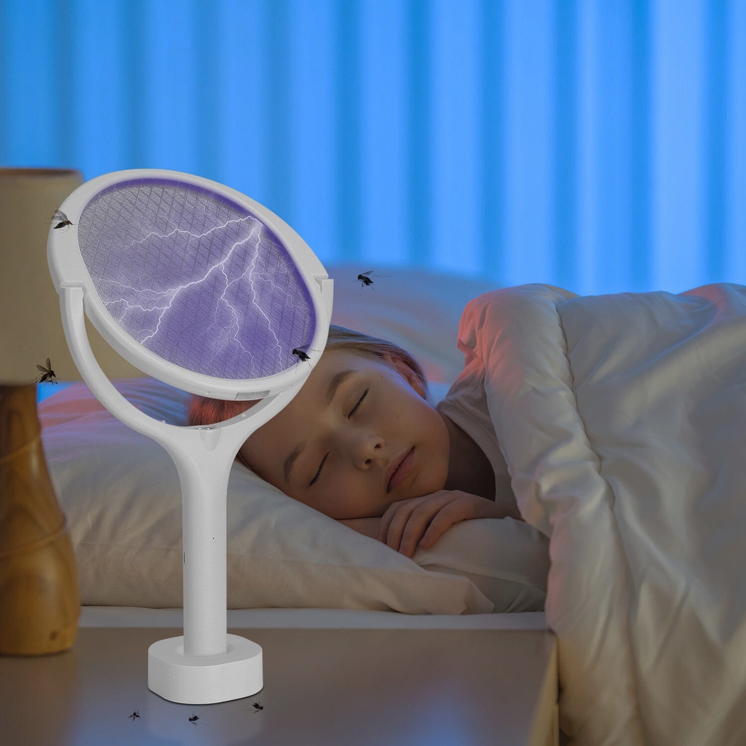 Are you still dealing with annoying mosquitoes? Our 3-in-1 electric mosquito catcher draws them in with UV light and wipes them out with a powerful 3200V electric charge. To reach mosquitoes that are on walls or ceilings, we’ve designed a 90º rotating head along with a telescopic extension tube, allowing you to capture them from any angle and height. The 3-layer net design also protects you from electric shocks should you touch the net by accident. It is rechargeable via USB and portable, making it perfect for use in bedrooms, workplaces, dorms, or during camping trips. Take control of those irritating flies!