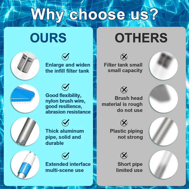 The built-in rechargeable battery ensures dependable operation and can be easily charged for future cleaning. Its lightweight and portable design makes it simple to use and store, making it a vital tool for maintaining your pool.