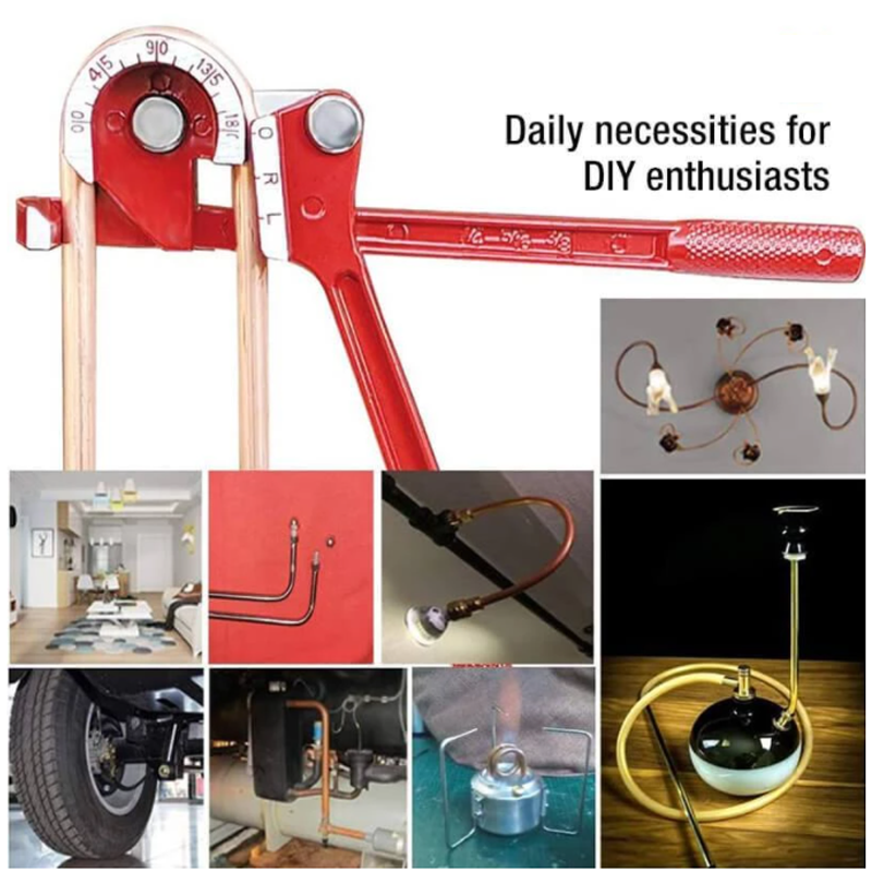 both copper and aluminum pipes from 0 to 180 degrees. It's useful across various sectors, such as construction, plumbing, heating, sanitary setup, vehicle maintenance, and DIY projects, among others.