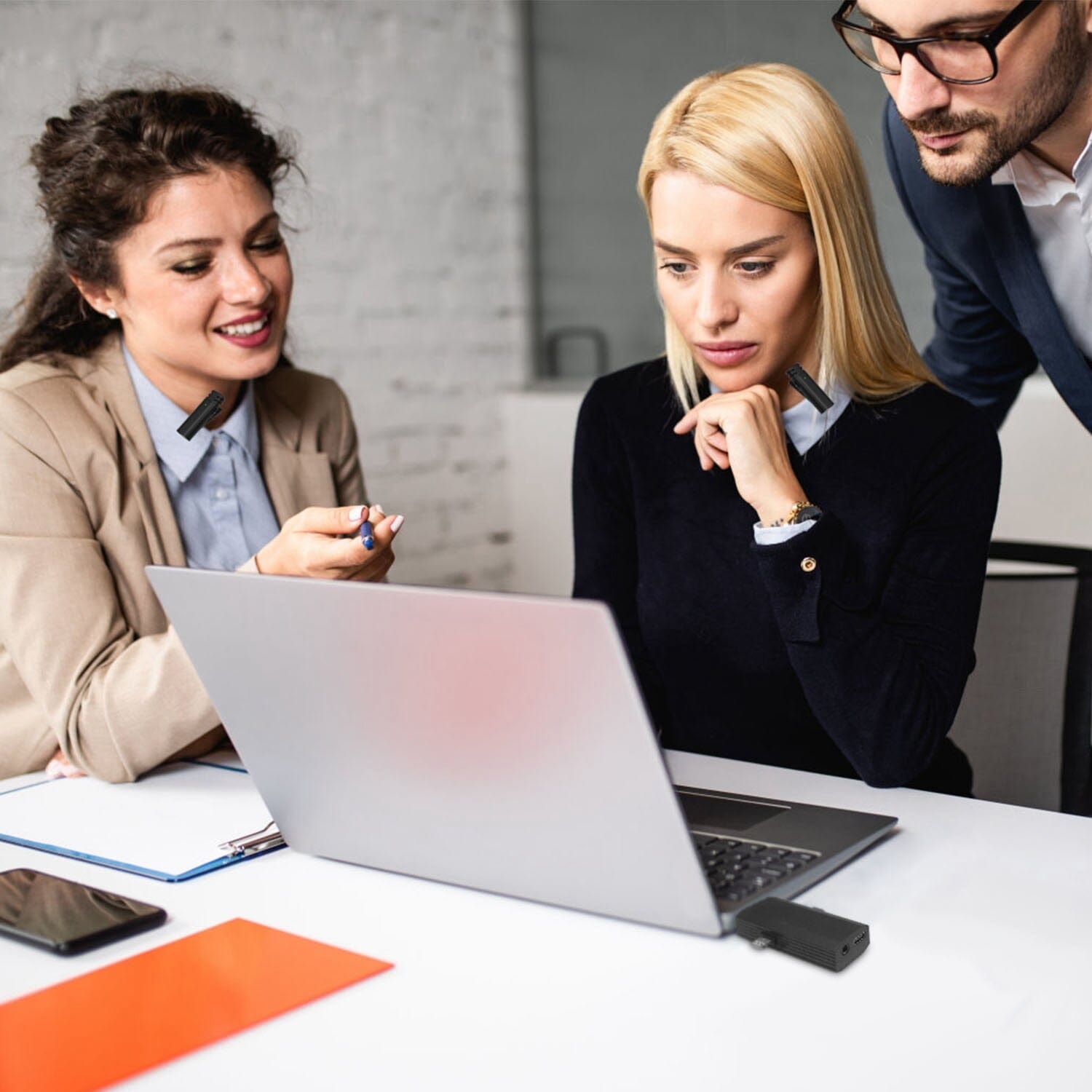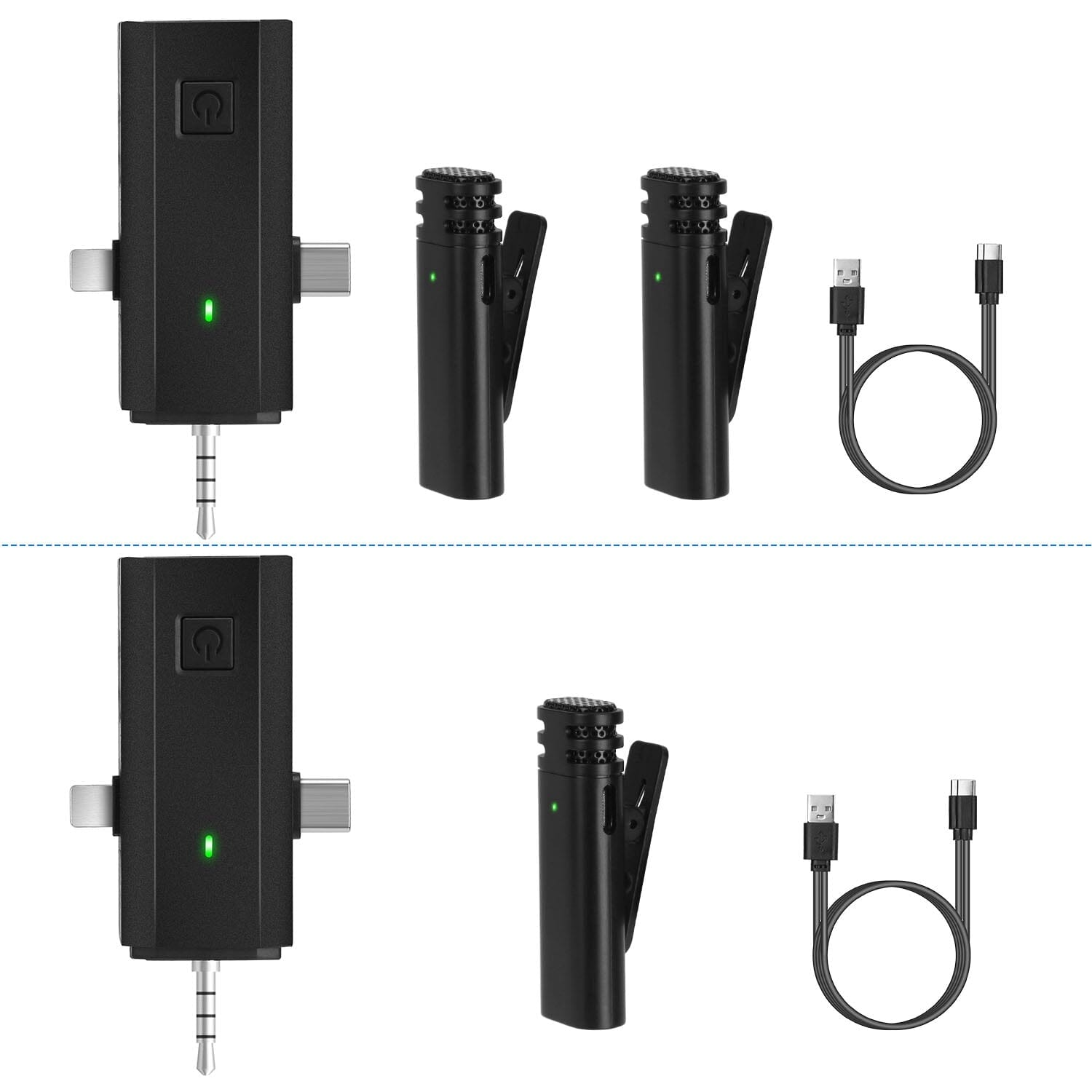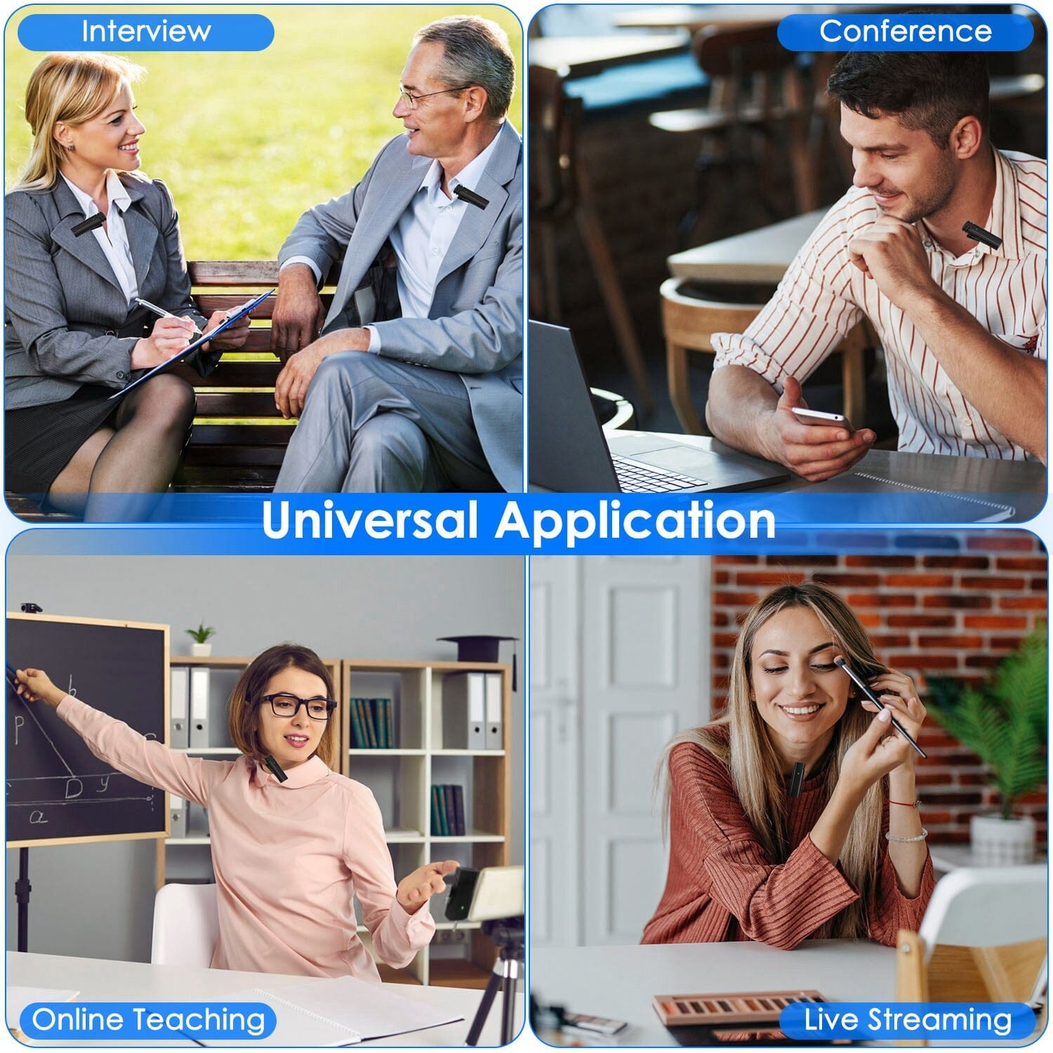 Our microphone kit includes a transmitter along with a 3-in-1 receiver that automatically connects when you attach it to your phone, camera, PC, or other devices. With a smart noise reduction chip, 360° omnidirectional pickup, high signal-to-noise ratio, and 30 ms latency technology, this small microphone provides up to 6 hours of reliable use, capturing sound that is natural, vibrant, smooth, clear, and stereo. Utilizing dependable 2.4G technology, it can operate within a range of 65.6 feet. This product is perfect for live streaming, recording sessions, interviews, or educational purposes.