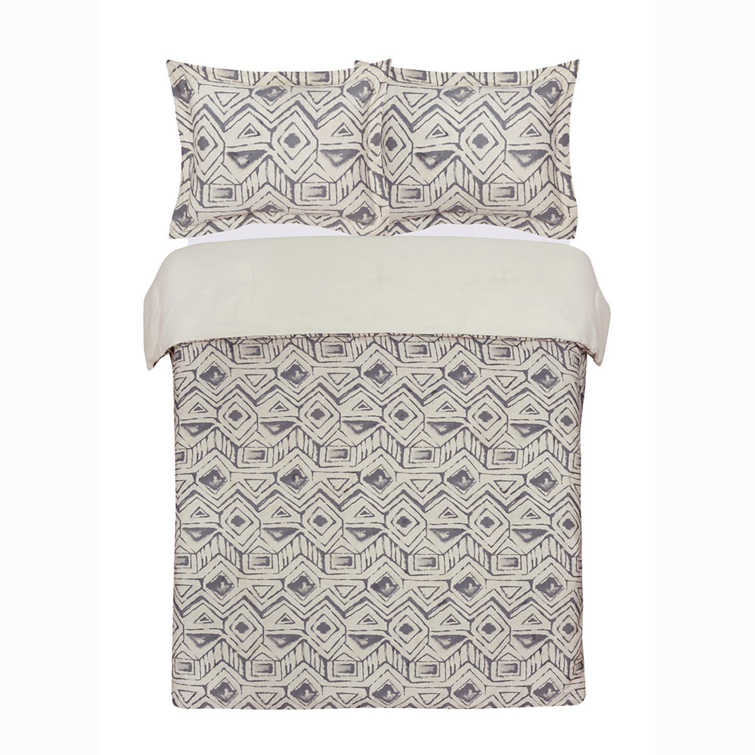 This Global bedding collection features an exciting and natural charm with exquisite touches that create an inspiring and effortless ambiance for your home. The Mali duvet and pillow set highlights a tribal-themed design in warm gray hues against a natural canvas, complemented by a solid light beige shade on the reverse. This gorgeous bedding ensemble will turn your bedroom into a peaceful and soothing retreat, while the classic, neutral palette harmonizes perfectly with any style of decor. This duvet set is designed for everyone, from students to master suites. Enhance your decor or introduce a unique flair to any room in your home with the corresponding Global embroidered curtain panels (available separately).