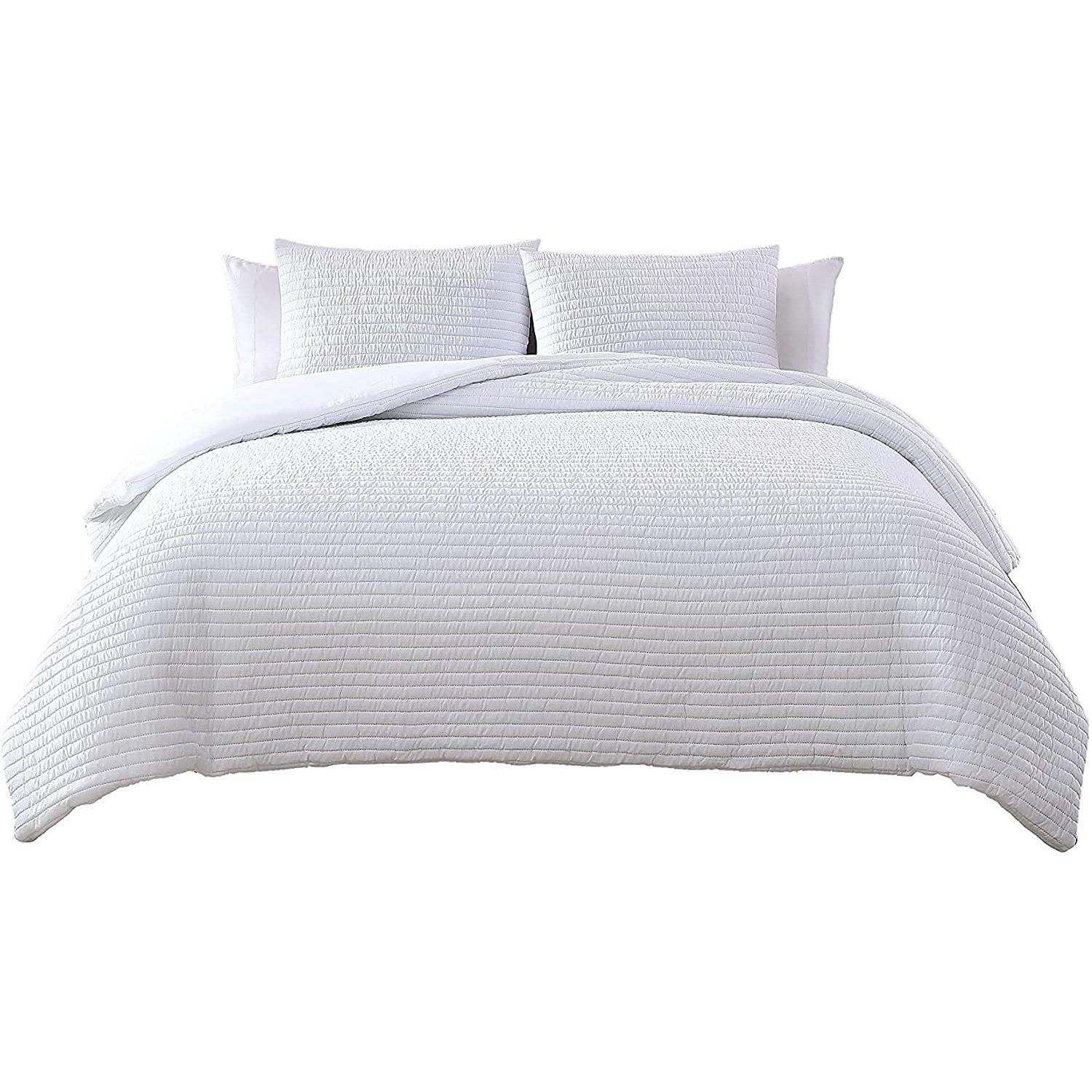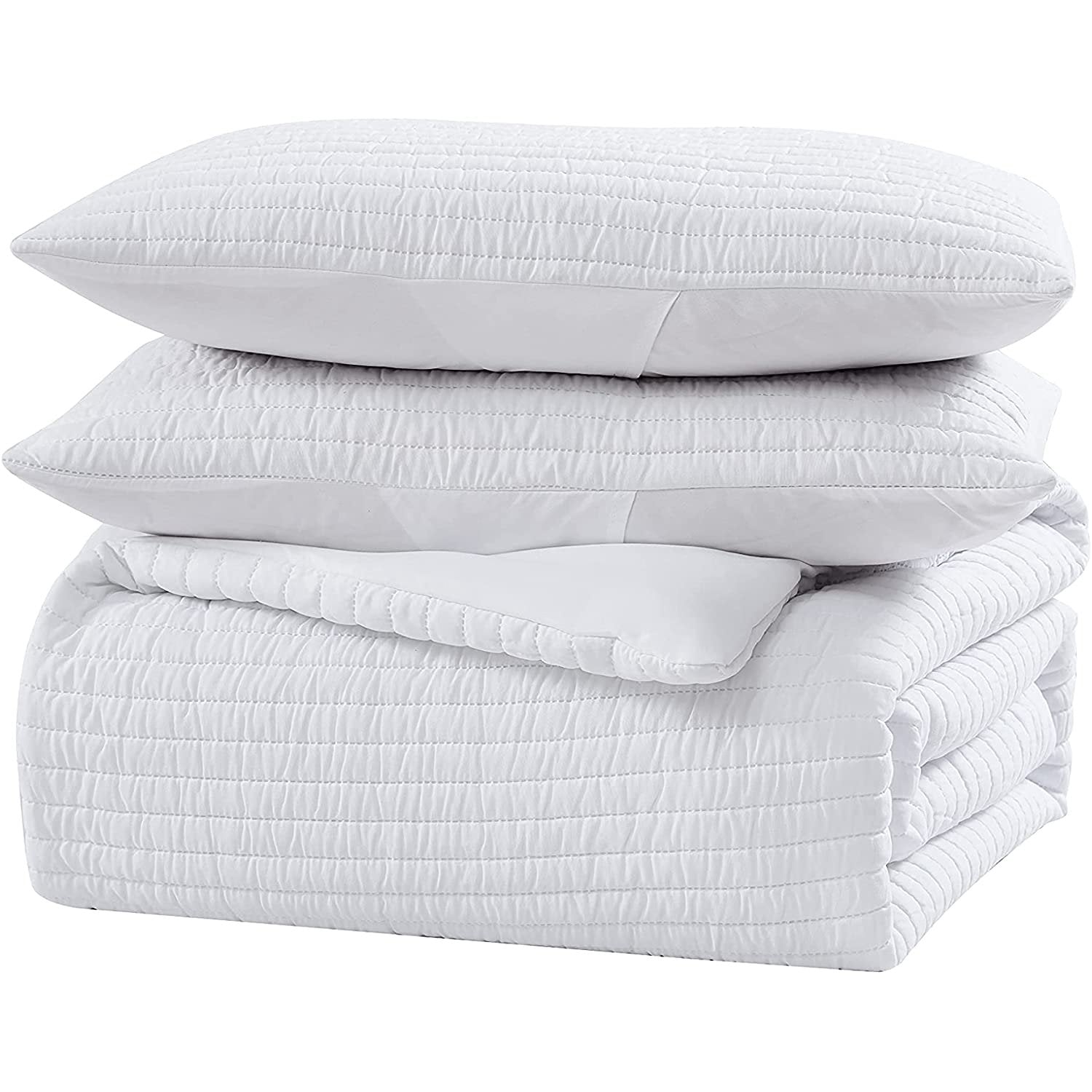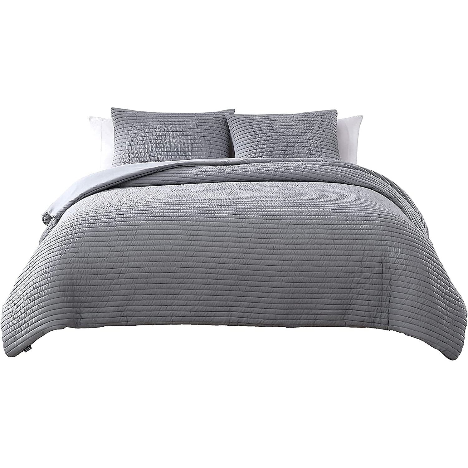 The Palm 3-piece Queen Quilt Set from Nesting Company is charming and sophisticated. Its channel quilting design contributes to a cozy, rustic atmosphere. The solid hue options also foster a calming environment, perfect for relaxing after a hectic day. Crafted from incredibly soft microfiber, it’s suitable for all-year-round use. All items included in the set are machine washable for hassle-free upkeep.