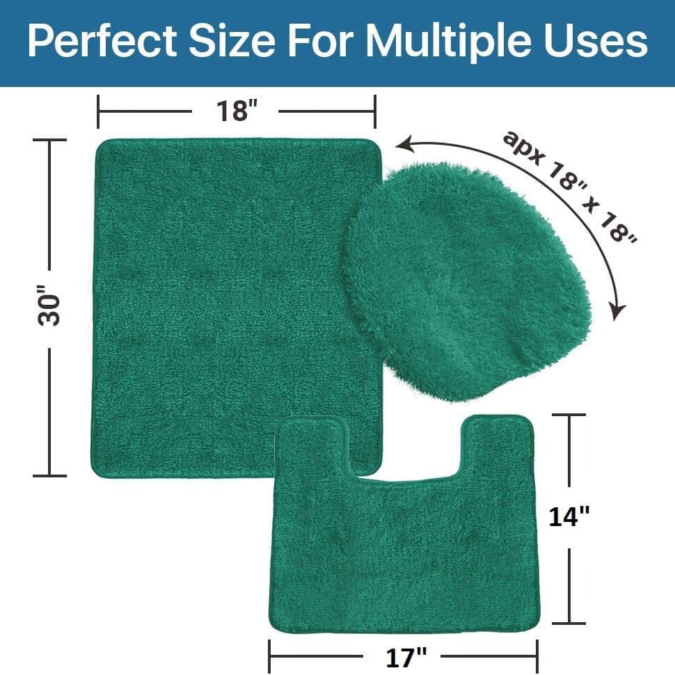 Select from a broad spectrum of colors to elevate your bathroom's aesthetic. Revamping the color palette of your bathroom has never been easier! This collection features a bath mat (18" x 30"), a contour mat (17" x 14"), and a toilet seat cover (top measures 18 inches x 18 inches - designed for standard toilet seats, not suitable for elongated models). Made from polypropylene that comes from Turkey.