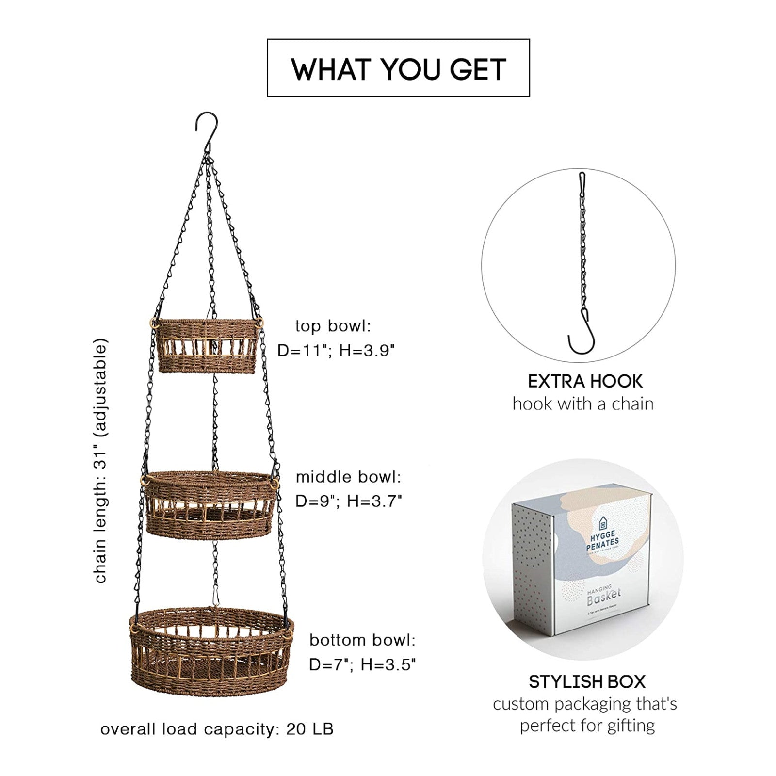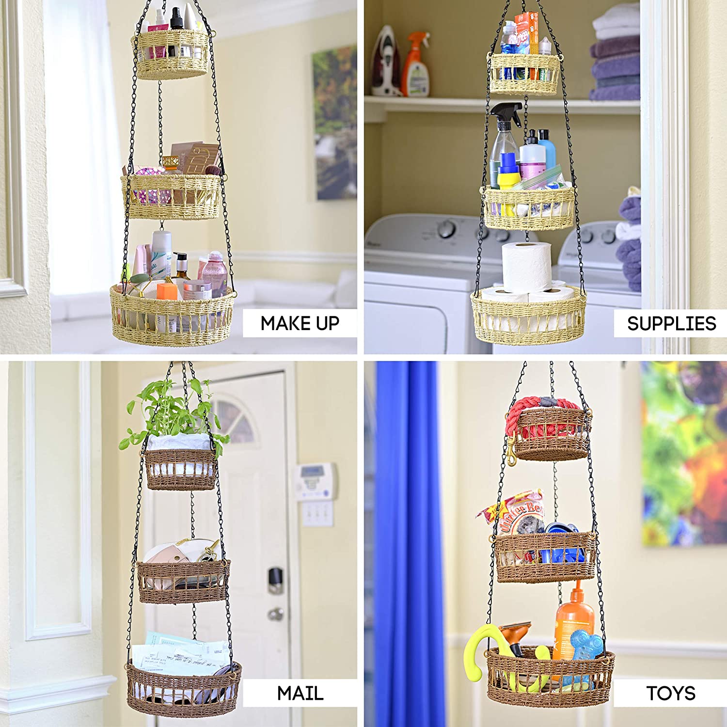 MULTI-PURPOSE APPLICATION: A tiered hanging fruit basket ideal for the kitchen, pantry, balcony, RV, garden, or virtually anywhere else.