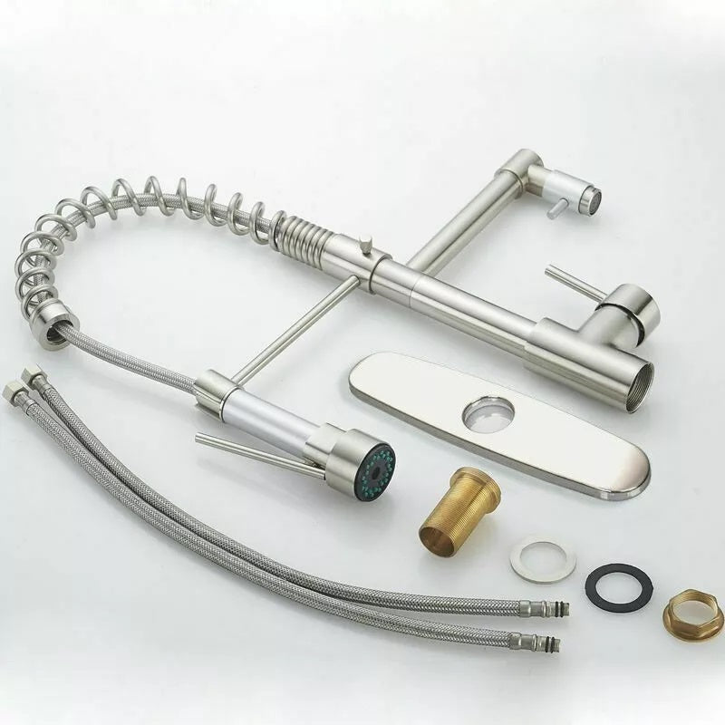 Our Kitchen Faucet is equipped with a pre-installed hose, making DIY installation a breeze in under 30 minutes. This kitchen single handle faucet removes the need for professional plumbing assistance, allowing you to upgrade your sprayer faucet kitchen with an elegant chrome kitchen faucet in no time.