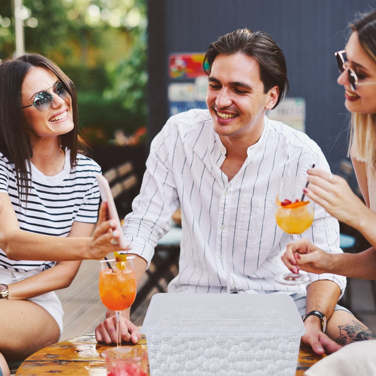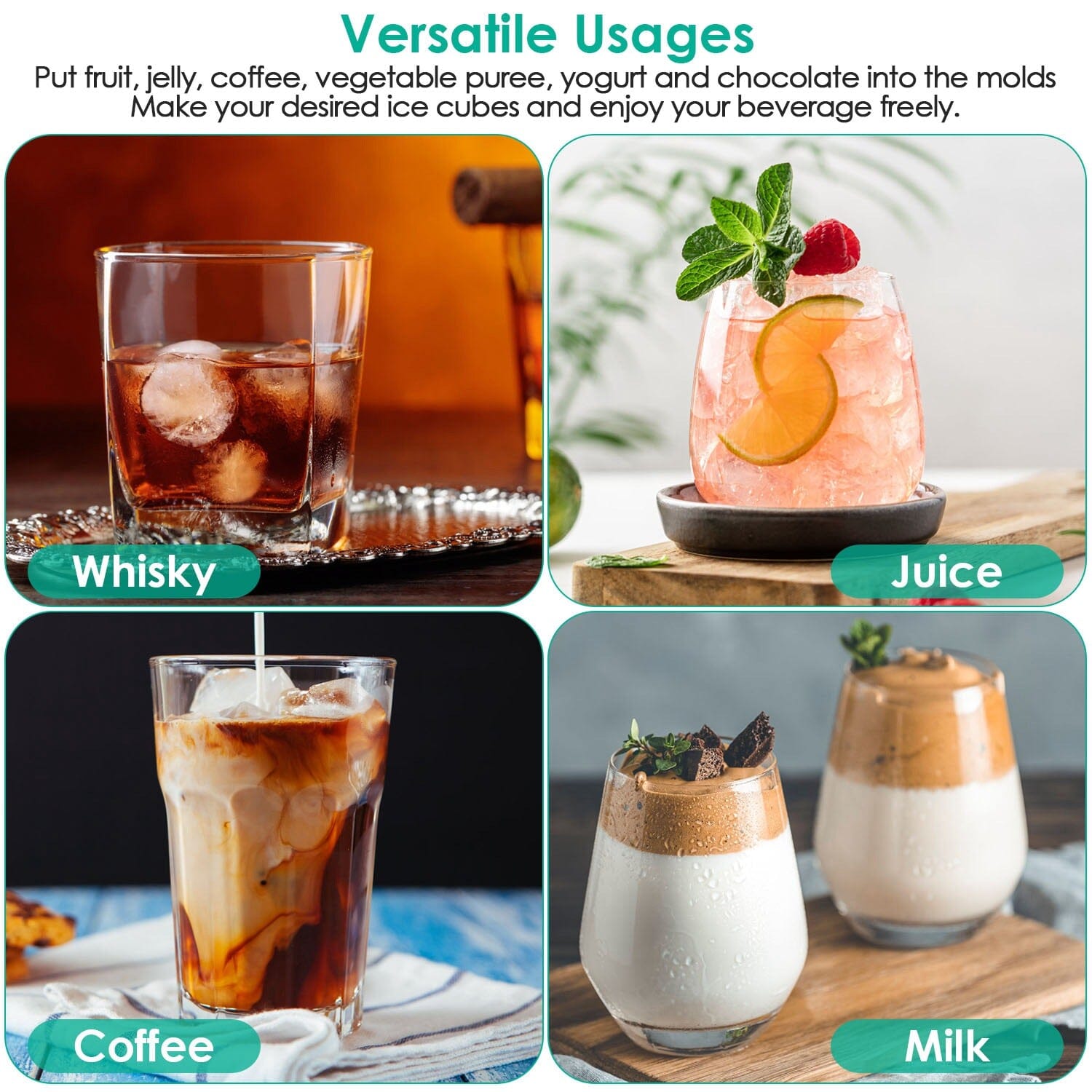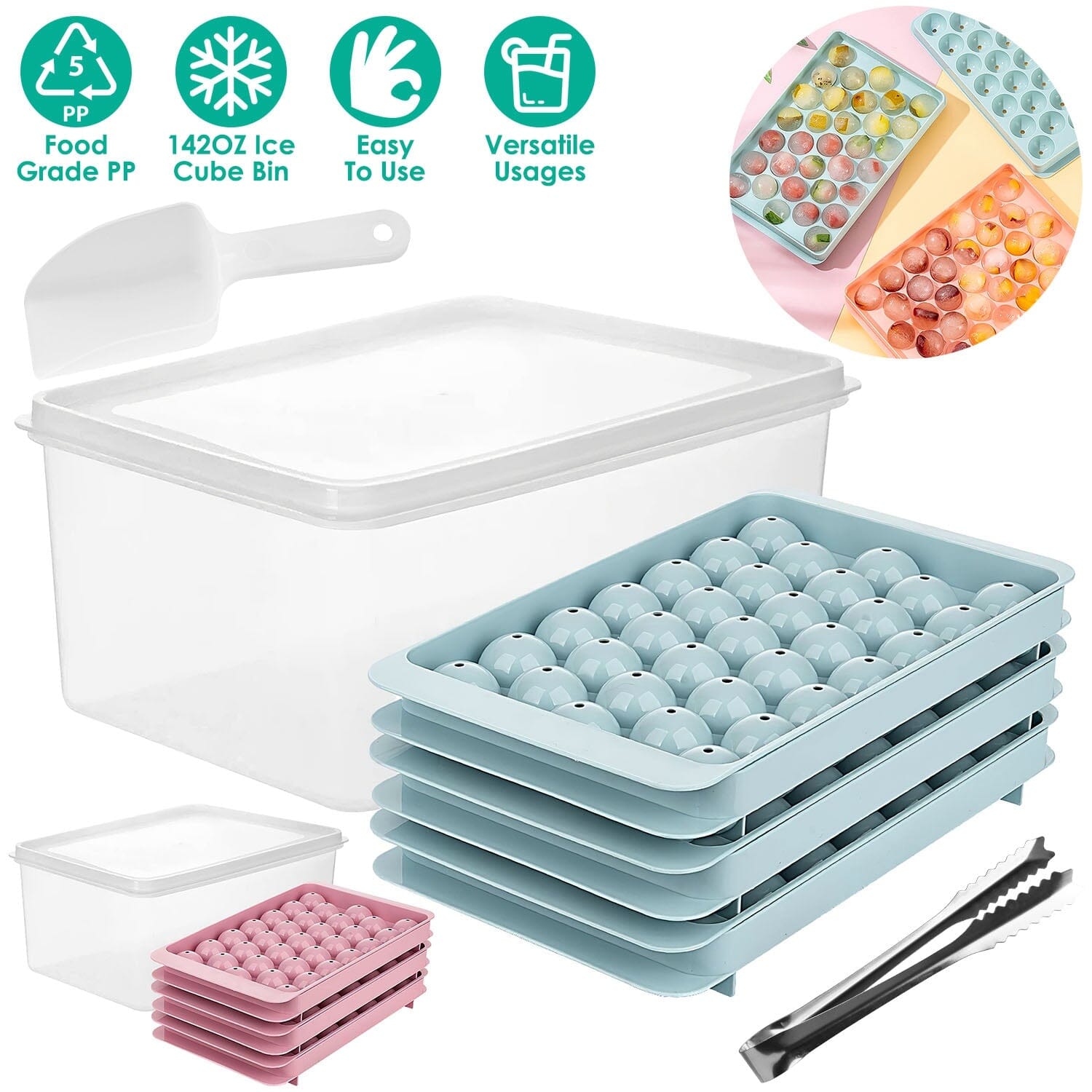 Do you enjoy refreshing drinks and want to relish icy beverages at any time and place? Our 4-pack ice cube trays produce small and playful ice cubes, offering an easy and quick method to craft ice balls more rapidly than conventional ice cube molds. Constructed from food-safe PP material, it is safe, non-toxic, and built to last for extensive use. With 4 molds along with an ice storage container, you are able to yield 132 ice balls simultaneously and store about 400 ice balls in the ice box, guaranteeing that your favorite drink can be prepared whenever you wish, complete with an ice scoop and tongs.