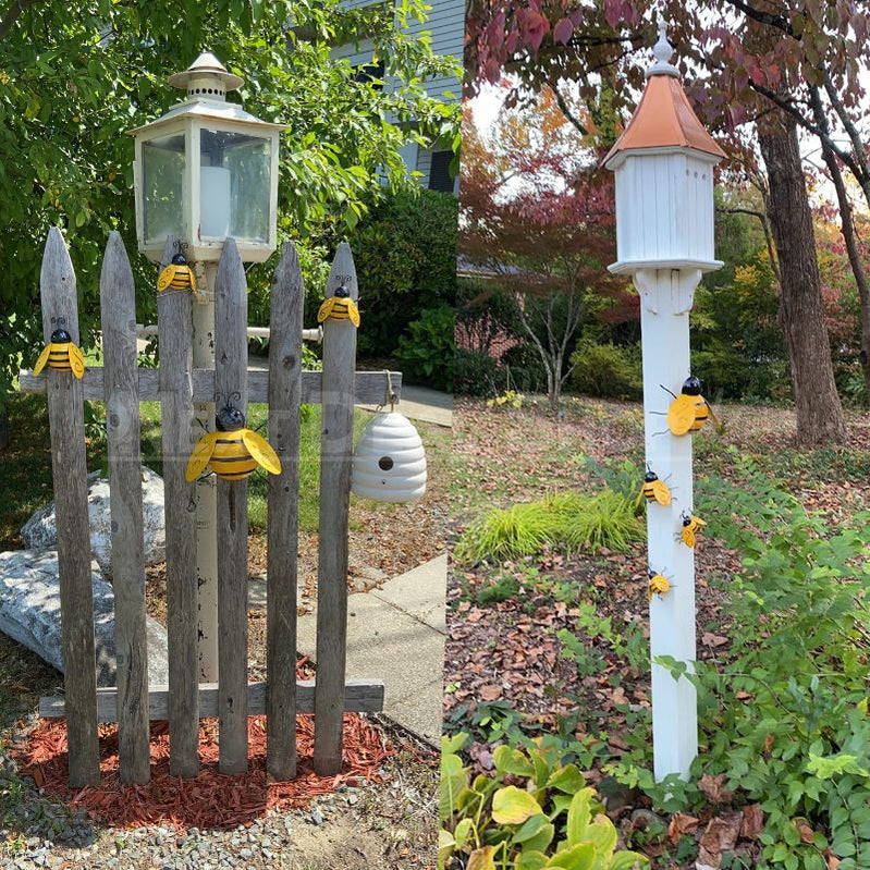 Enhance your fences and walls with this lovely collection of four metal bumblebees!