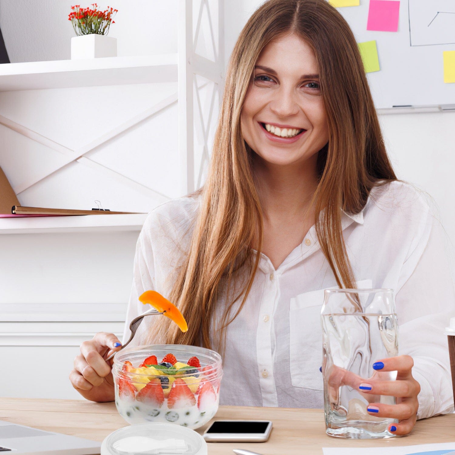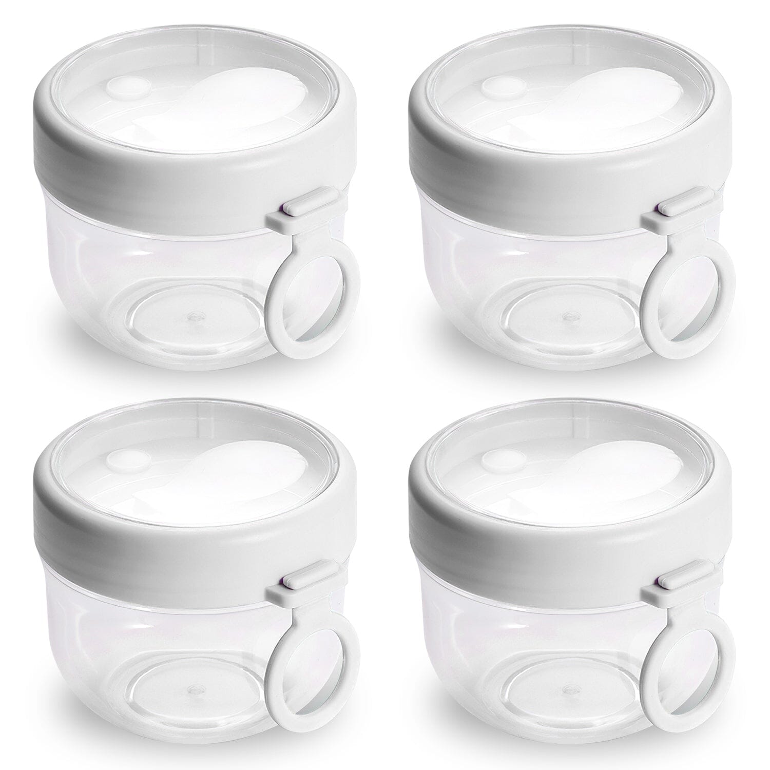 Every oatmeal container is designed to store nearly 600ML/20OZ of your homemade overnight oats. This 4Pack set of oatmeal containers, crafted from high-quality PC material, serves as an excellent option for offering a nutritious, low-calorie breakfast solution for the whole family. The integrated collapsible spoon in the lid provides the convenience of eating on the run, eliminating the need for an additional spoon. Its secure sealing point guarantees leak-proof protection, keeping the contents fresh and flavorful while preventing spills. Perfect for your overnight oats, yogurt, parfaits, simple salads, milk, smoothies, nuts, and more.