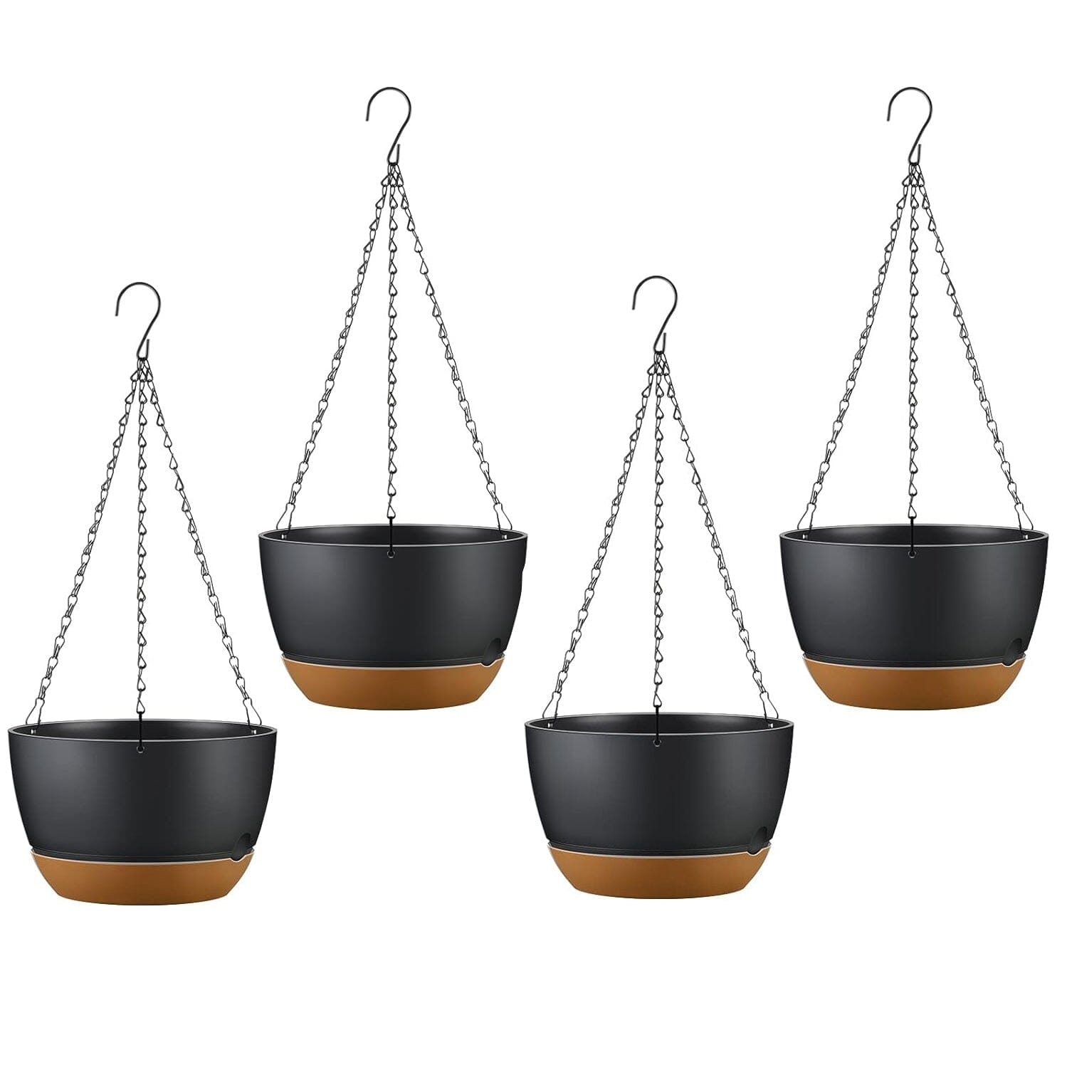 Measuring 24.5 cm in diameter, our elegant hanging planters are perfect for repotting medium to large plants and flowers. They are a wonderful way to add a hint of elegance and greenery to your terrace, garden, windowsill, patio, balcony, and more. With a versatile, detachable bowl, it can act as an additional water reservoir to keep your plants hydrated while you're away, or serve as a drainage bowl to collect any excess water from the upper pot's drainage holes. Crafted from durable stainless steel triangular chains and a robust plastic exterior, these planters are built to withstand various outdoor weather conditions.