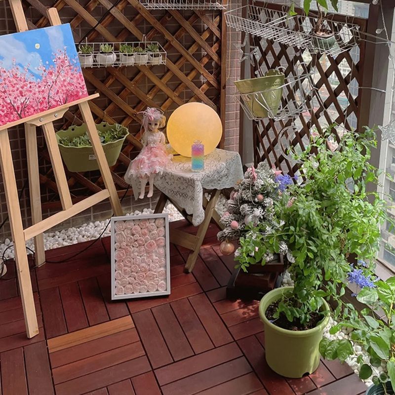 Skorter | 4-Slat Wood Deck/Patio Floor Tiles Interlocking Installation Floor Tiles