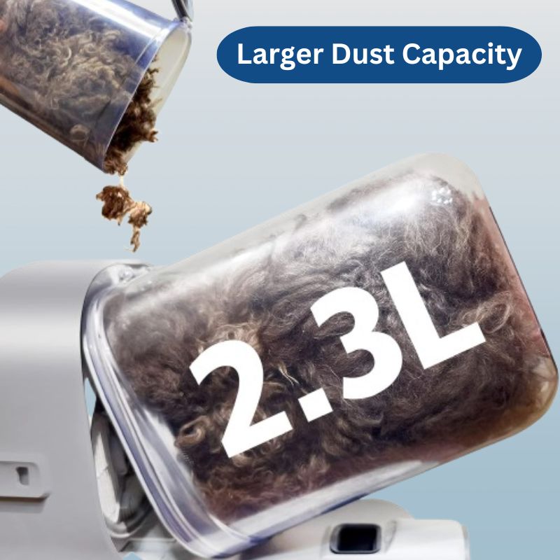 The ample 2.3L dust container holds significantly more pet hair than standard models, making it ideal for furry companions who shed heavily. This larger capacity allows for uninterrupted grooming sessions, so you can focus on your pet’s grooming without the hassle of constant cleanup.