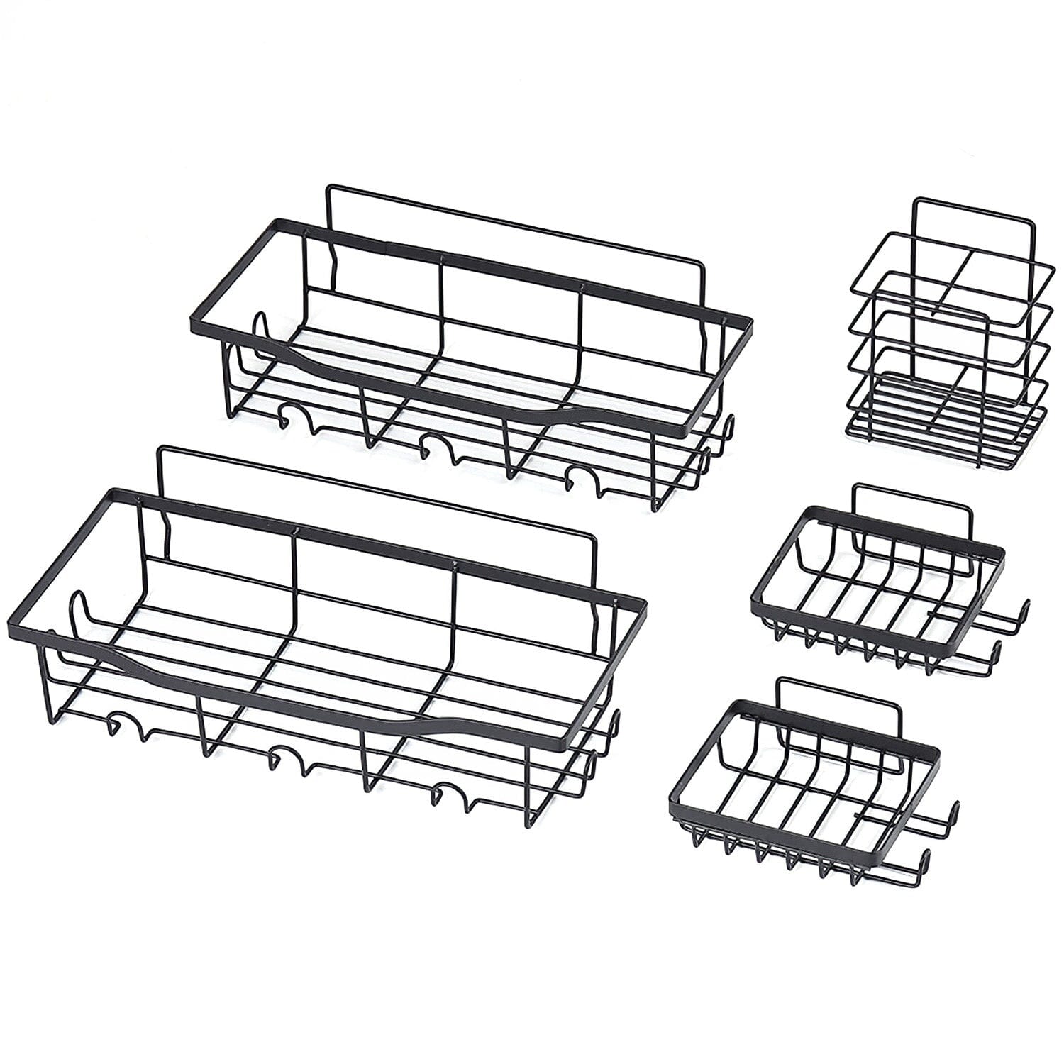 Are you frustrated with your cleaning and bath essentials spread out all over your bathroom countertop? Our shower caddy provides the ultimate solution! It’s perfect for organizing body wash, shower gel, shampoo, combs, and more. Additionally, it works wonderfully in the kitchen as well. Each caddy comes equipped with 7 built-in hooks, including 2 hooks on each soap holder, giving you a total of 18 hooks to hold items like balls, towels, clothing, and other essentials. The set includes 5 robust adhesive stickers, making it easy to attach to smooth walls for an organized storage option! Constructed from carbon steel, it's not only strong but also resists rust effectively!