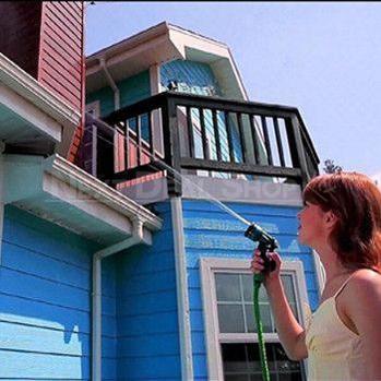 This garden hose expands automatically to three times its original length, offering a larger diameter and a robust high-pressure spray.