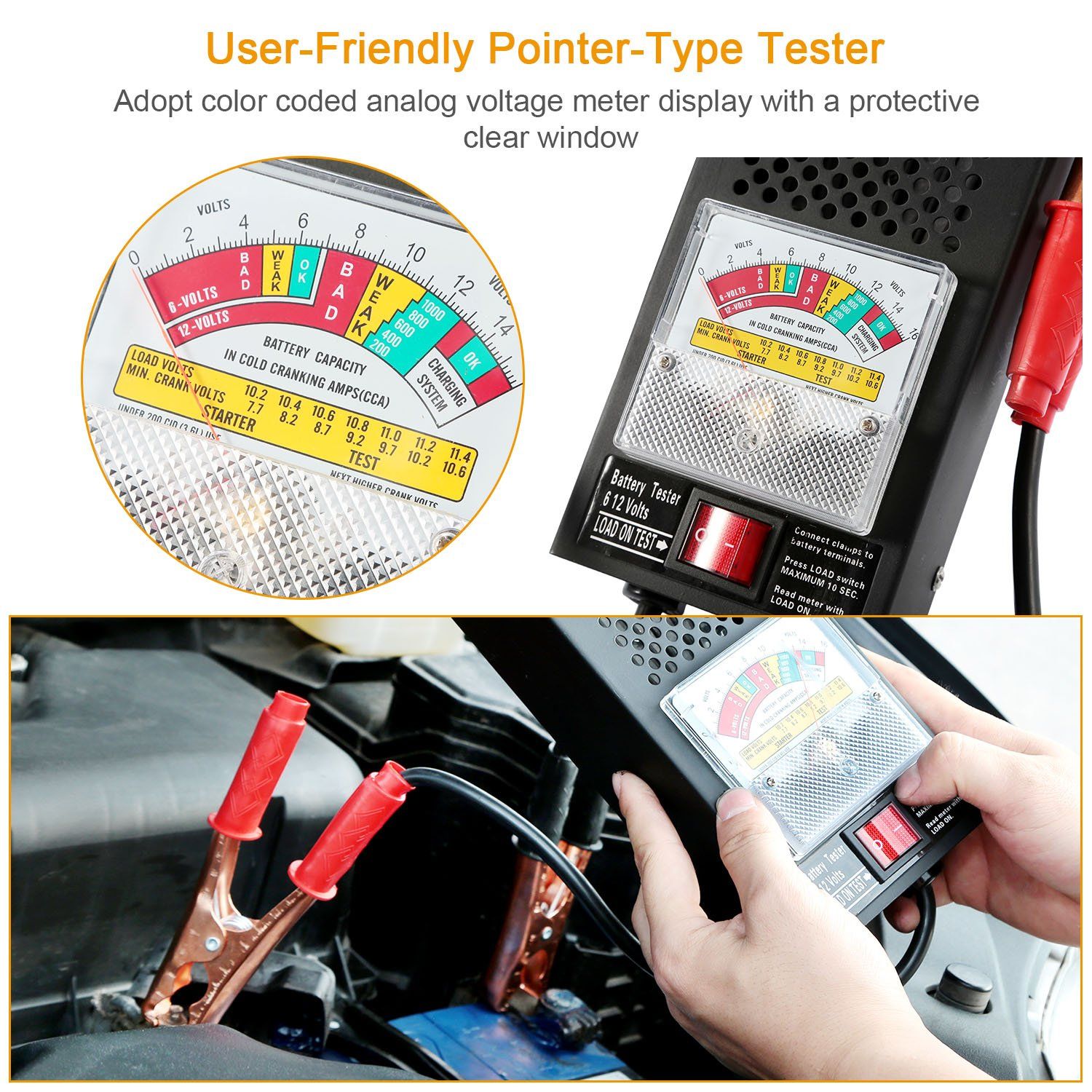 - Diverse Functionality: Tailored for testing 6 and 12-volt batteries, this device can serve as a tool to assess load, battery condition, starter motor current draw, and deliver a complete analysis of the charging system.