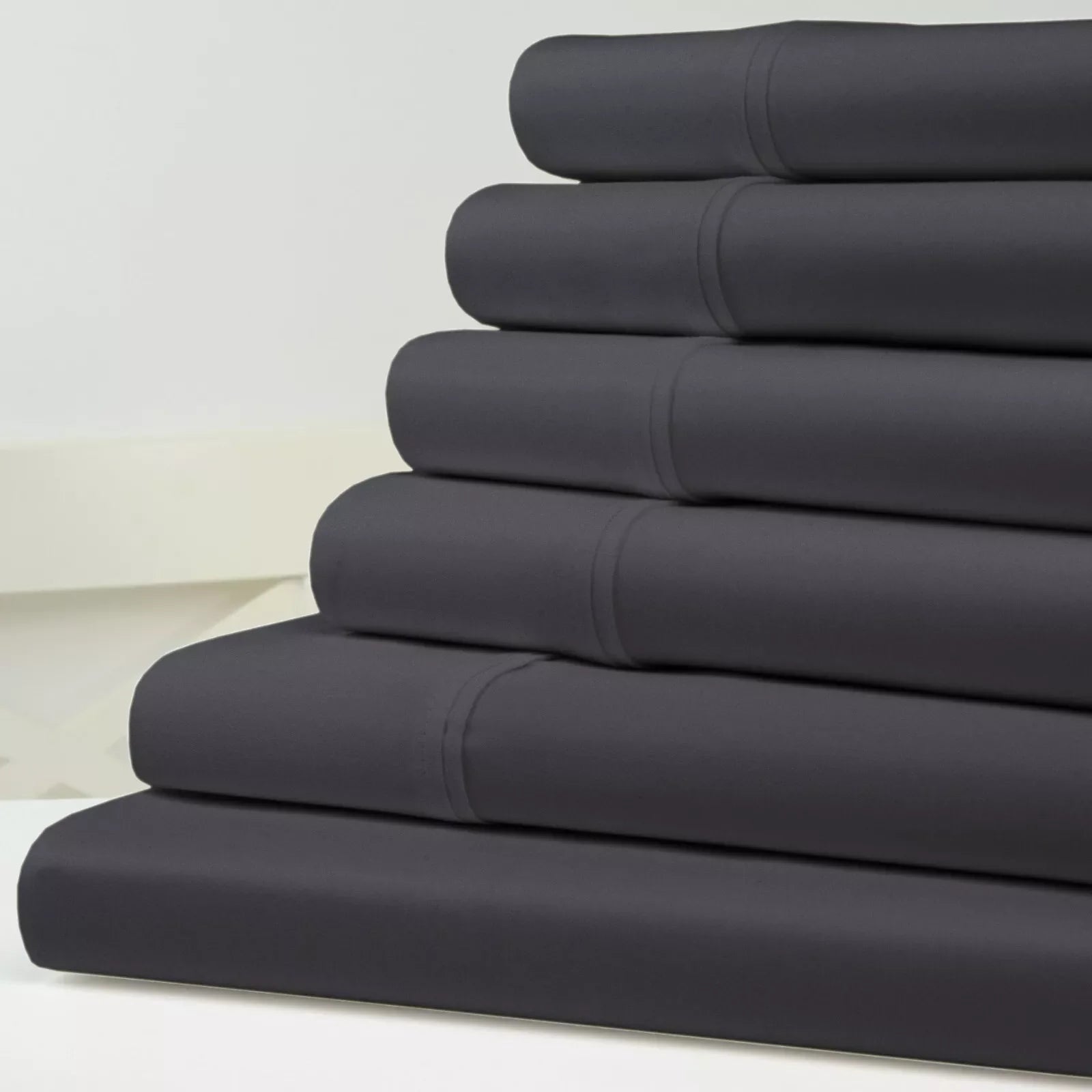 This exquisite 6-piece bedding ensemble with a 1500 thread count from Kathy Ireland is made with the finest bamboo rayon and cotton textiles sourced from prestigious manufacturers. These beautiful sheets are crafted with outstanding quality and durability at the forefront. We bring the sophistication and artisan skills of previous generations directly to your bedroom. Indulge in this lavish bedding made from bamboo rayon and cotton, designed to grace an upscale suite and be found in luxury hotels. The comfort, quality, and richness of our luxury bedding truly set it apart. The 10% bamboo rayon contributes a cooling softness, paired with 55% cotton that provides strength and comfort. The bamboo and cotton bedding is incredibly breathable and adapts to your body temperature, ensuring you stay cool during warm nights and warm during cooler periods. Exceptionally comfortable in all climates.