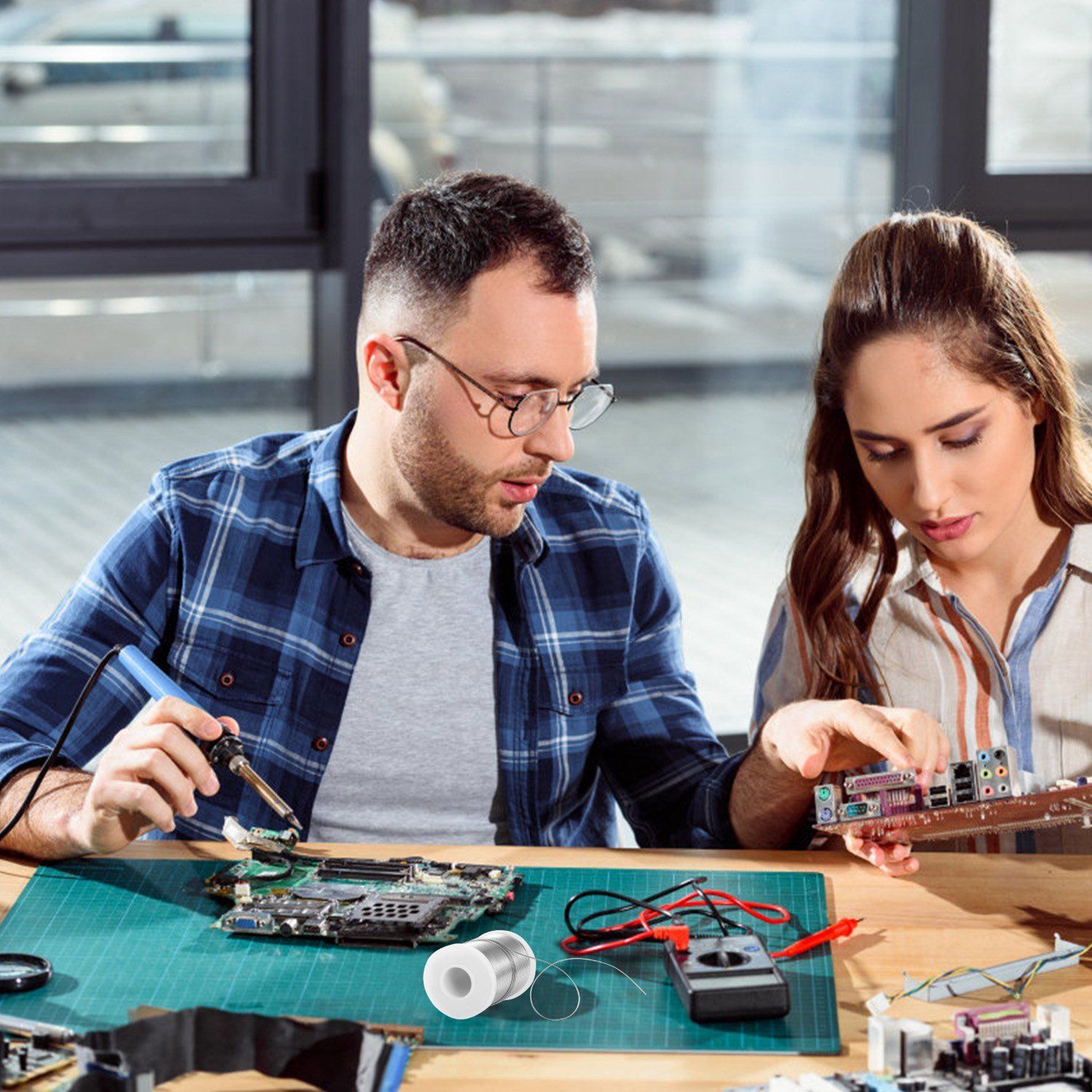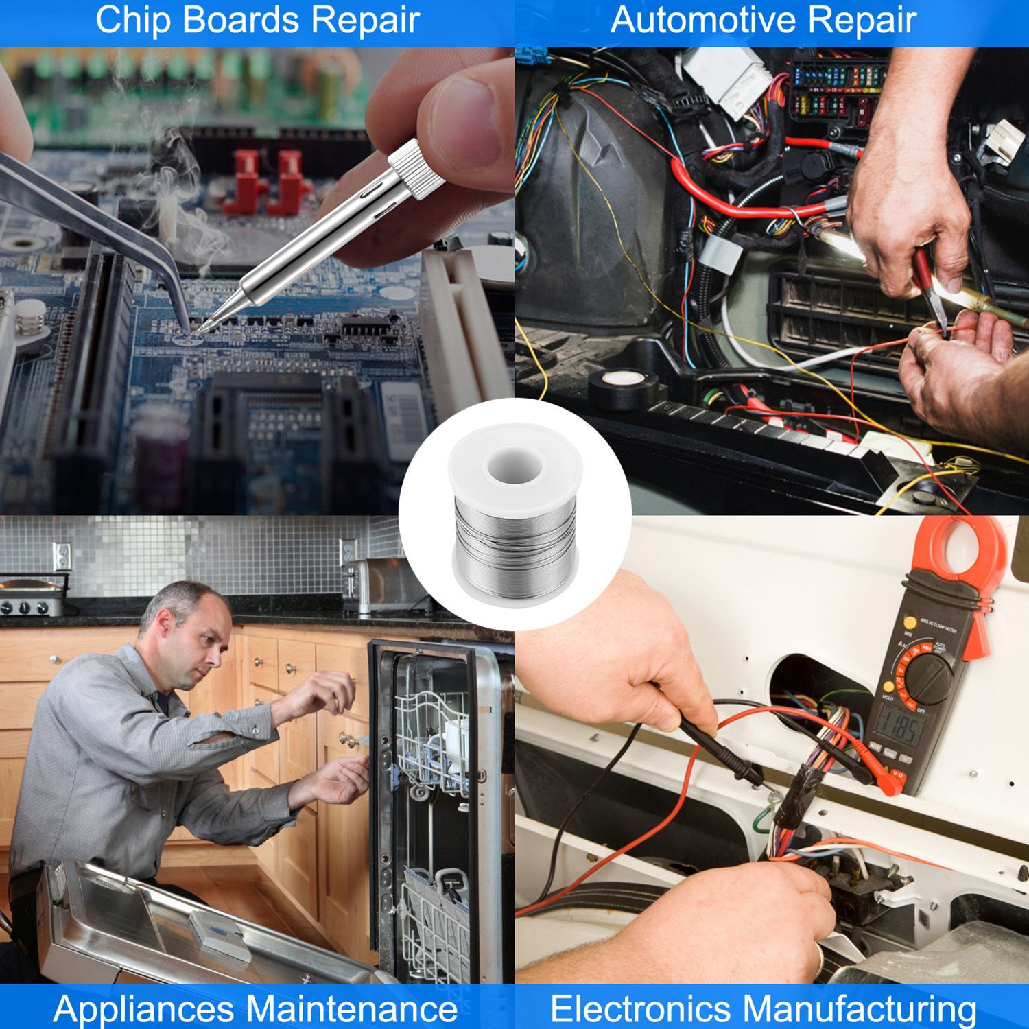 This solder wire consists of 60% tin and 40% lead, featuring a 1.7% active rosin flux core that provides excellent electrical and thermal conductivity. With a lower melting range (361°F-374°F/183°C-190°C), along with consistent heating and superb flow characteristics, it facilitates efficient and rapid soldering. The wire has a diameter of 0.03’’/0.8mm, making it suitable for a variety of electrical repairs, including circuit boards, mobile devices, radios, TVs, and other electronic equipment.